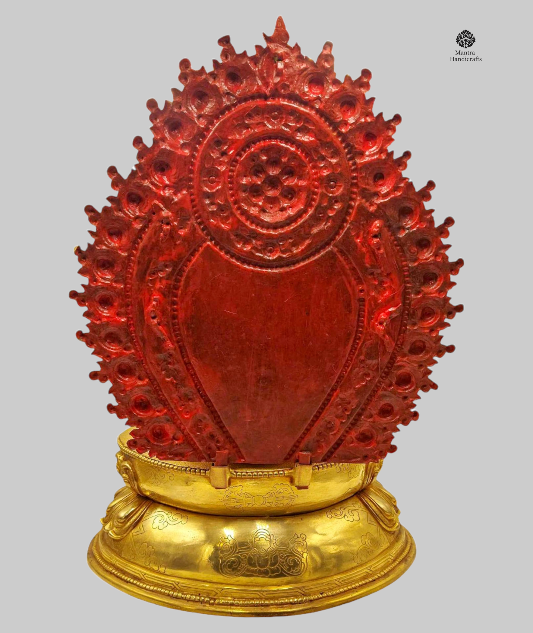 This exquisite Shakyamuni Buddha statue features a unique double base, meticulously handcrafted to ensure both stability and elegance. Its face is delicately painted with gold, radiating an aura of serenity and compassion that captures the profound spiritual essence of Shakyamuni Buddha. The intricate details in the carving, from the folds of his robes to the subtle expression of enlightenment on his face, reflect the artisan’s dedication to traditional craftsmanship. The double base not only enhances the statue’s structural integrity but also symbolizes the dual aspects of the spiritual journey: the earthly realm and the transcendent realm.