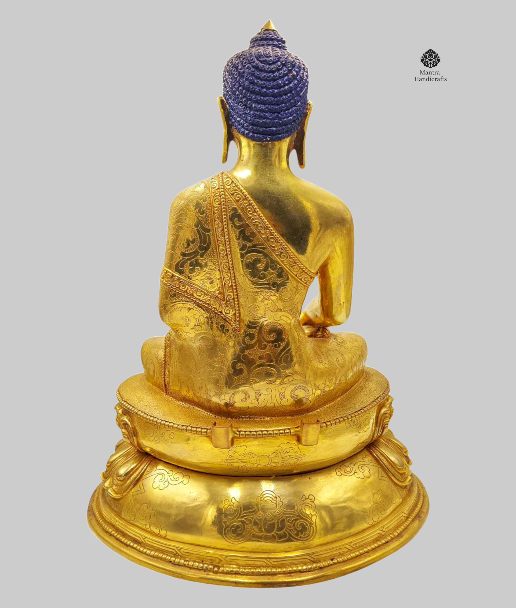 The luminous gold face serves as a focal point, drawing the observer into a contemplative state and inviting them to explore the depths of Buddhist teachings and inner peace. Every curve and line of this statue is thoughtfully designed, reflecting centuries of sacred art and conveying a sense of tranquility and wisdom. Whether displayed in a meditation space, a shrine, or as a centerpiece in a home, this statue becomes a beacon of inspiration and devotion. Its presence brings a sense of calm and balance, reminding one of the timeless teachings of the Buddha. This statue is more than a mere decorative piece; it is a symbol of spiritual awakening and a testament to the enduring legacy of Shakyamuni Buddha. Let it inspire your daily practice and guide you toward a deeper connection with the path of compassion and enlightenment.