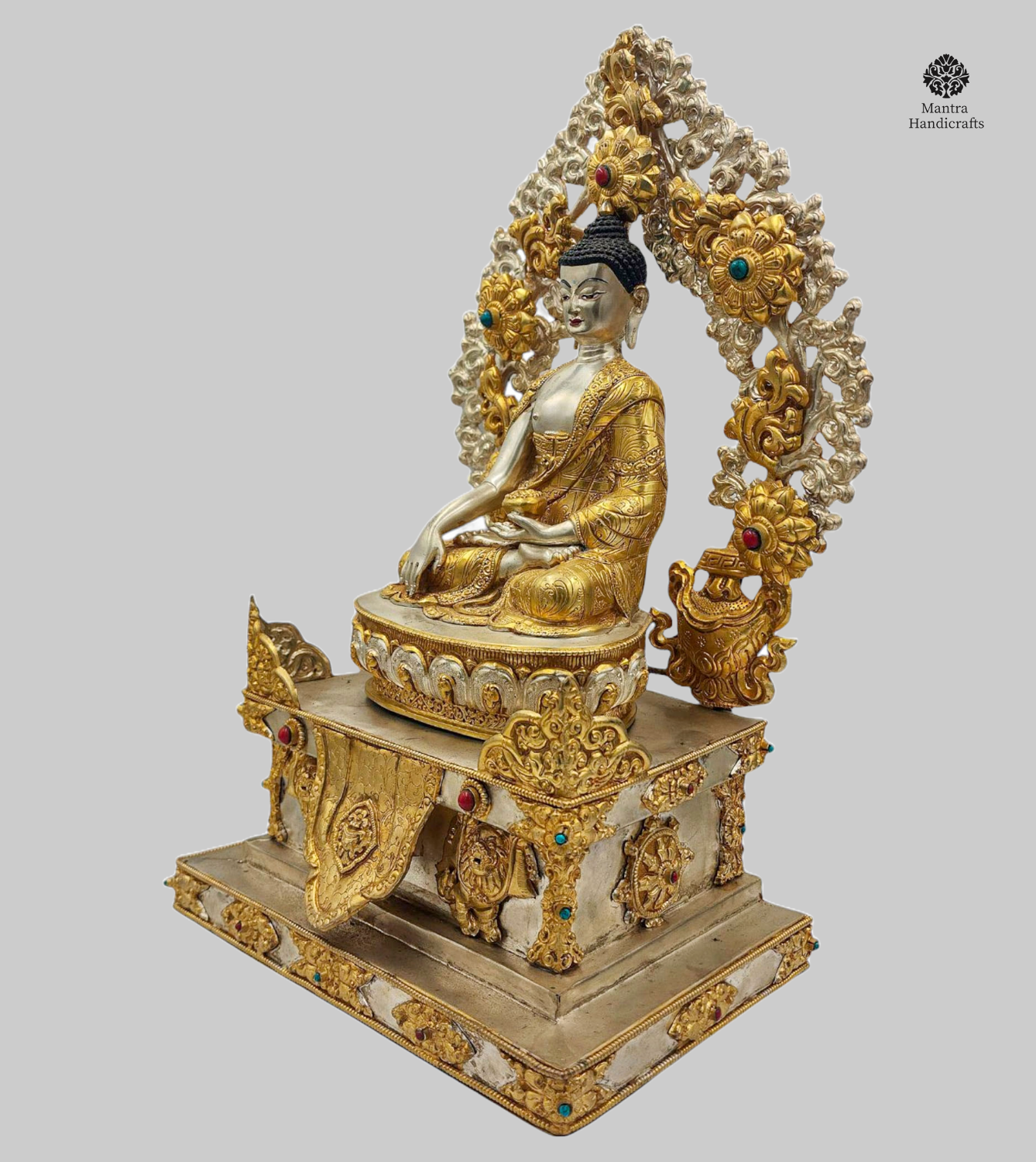 Shakyamuni Buddha Statue | Handcrafted Gold & Silver Finish