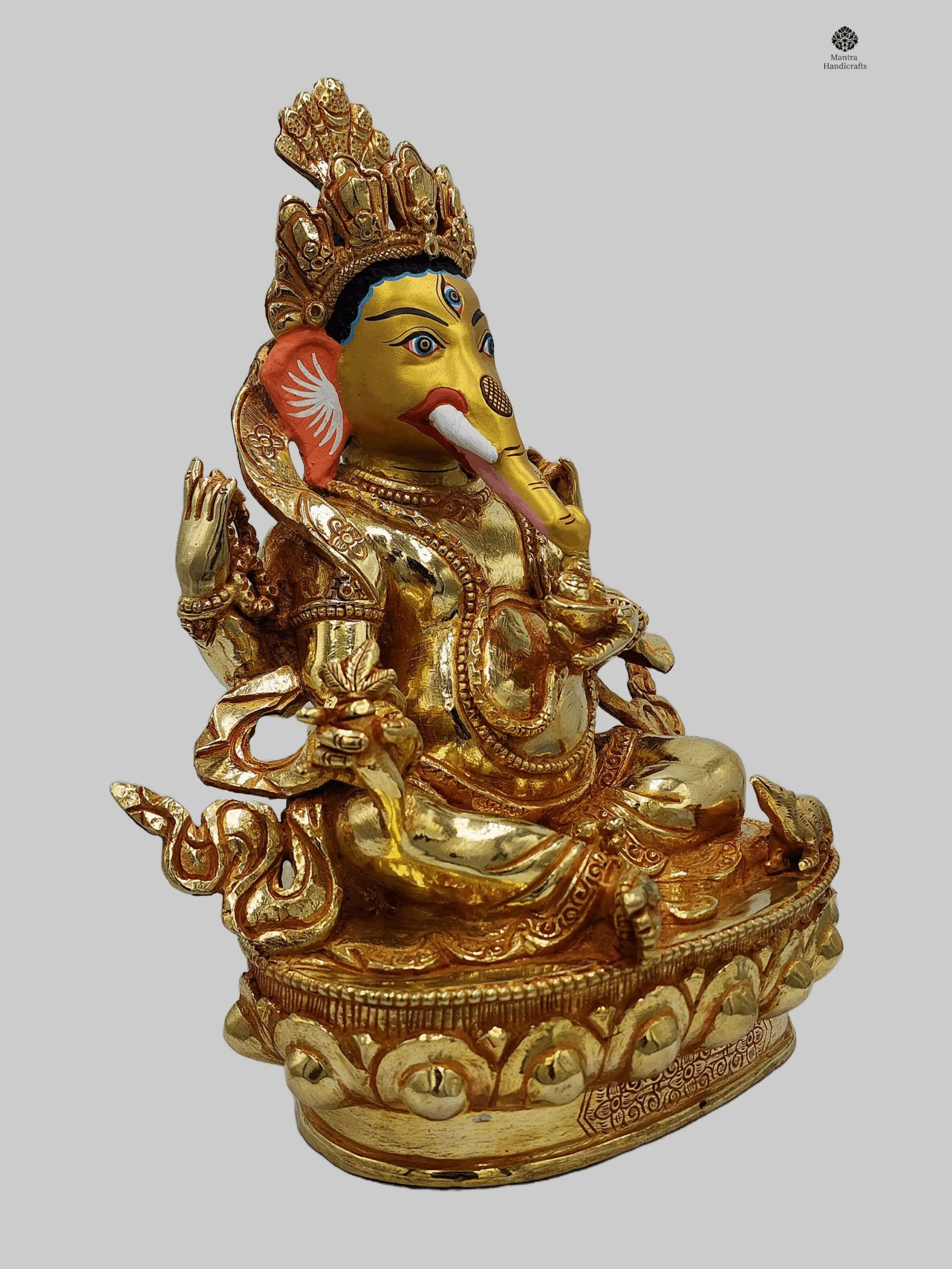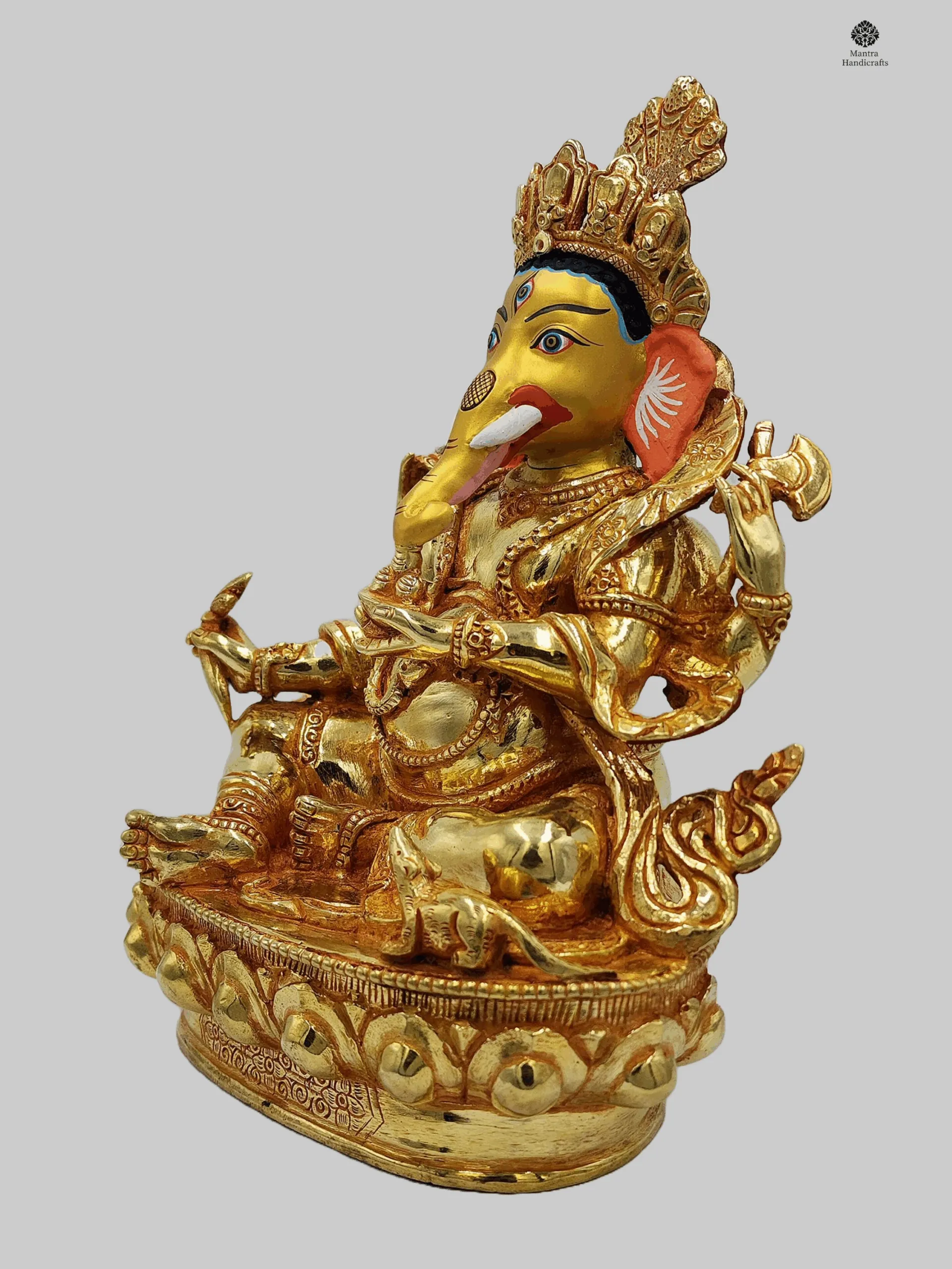 24K Gold Gilded Ganesh Statue | Handcrafted Hindu Elephant God Idol