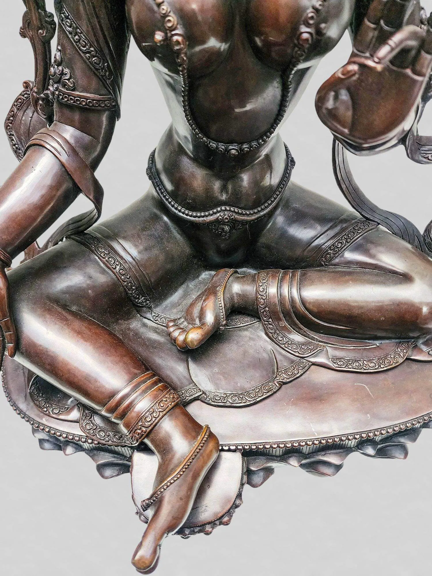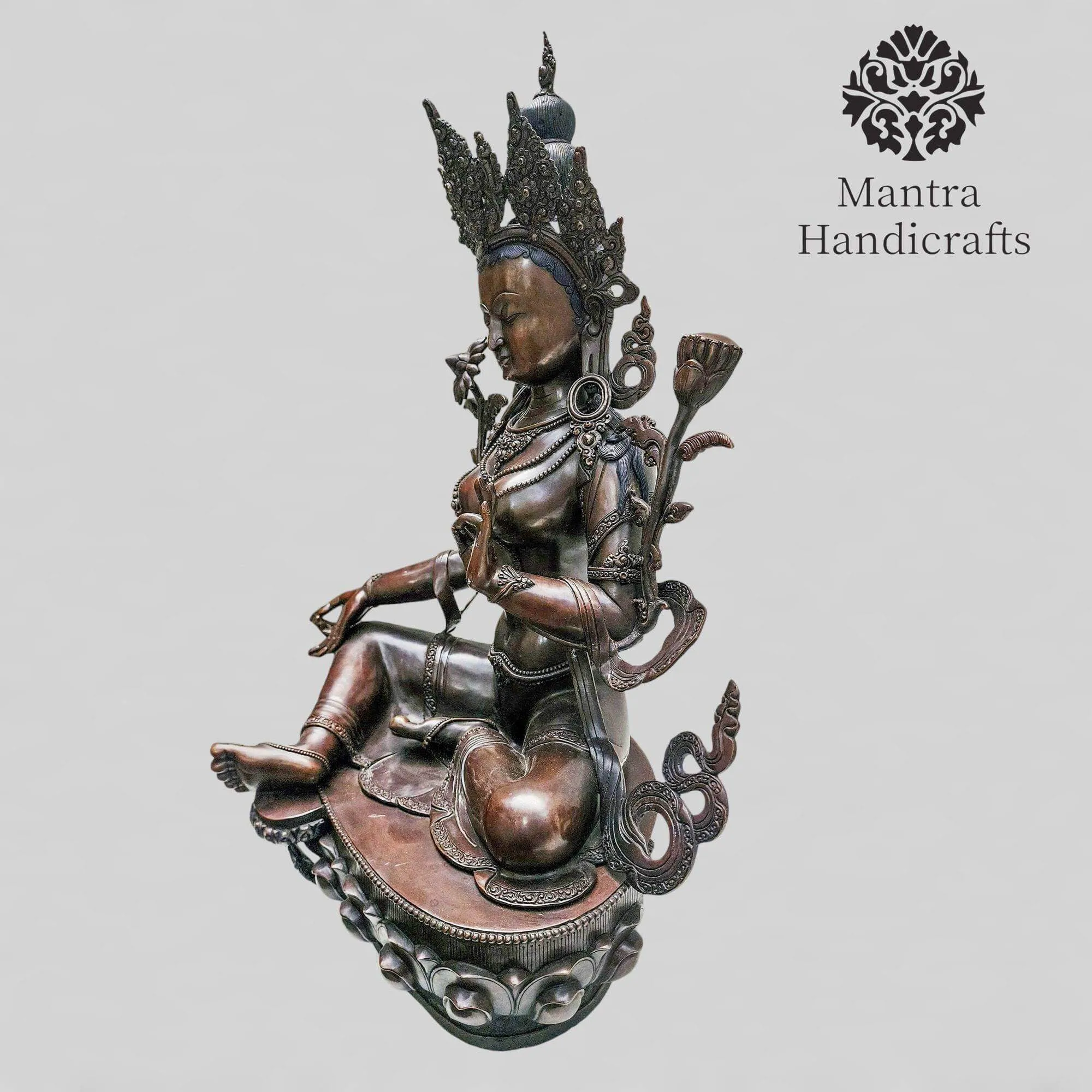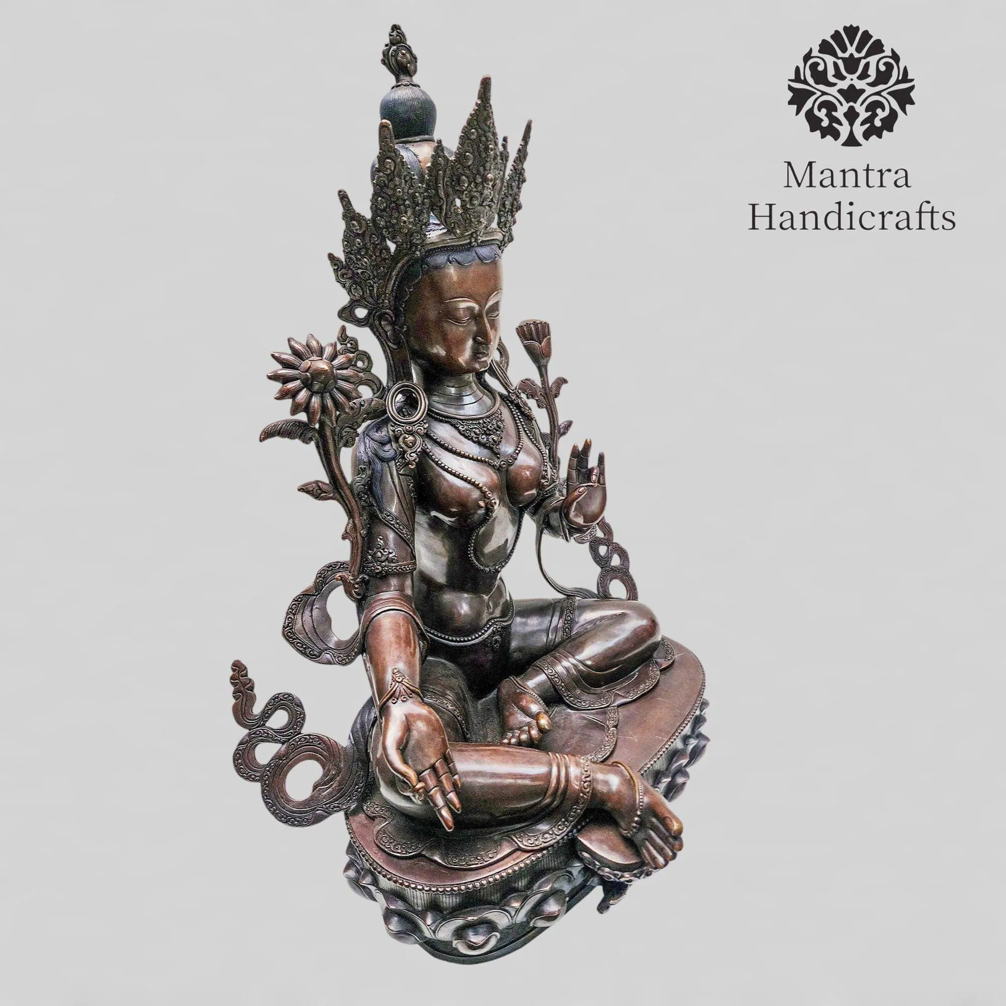A “chocolate oxidized” finish might refer to a specific type of patina or coating applied to the statue. This term isn’t a standard one in the context of Buddhist iconography or art, so I would recommend clarifying the terminology with the seller or artisan who is offering the statue.