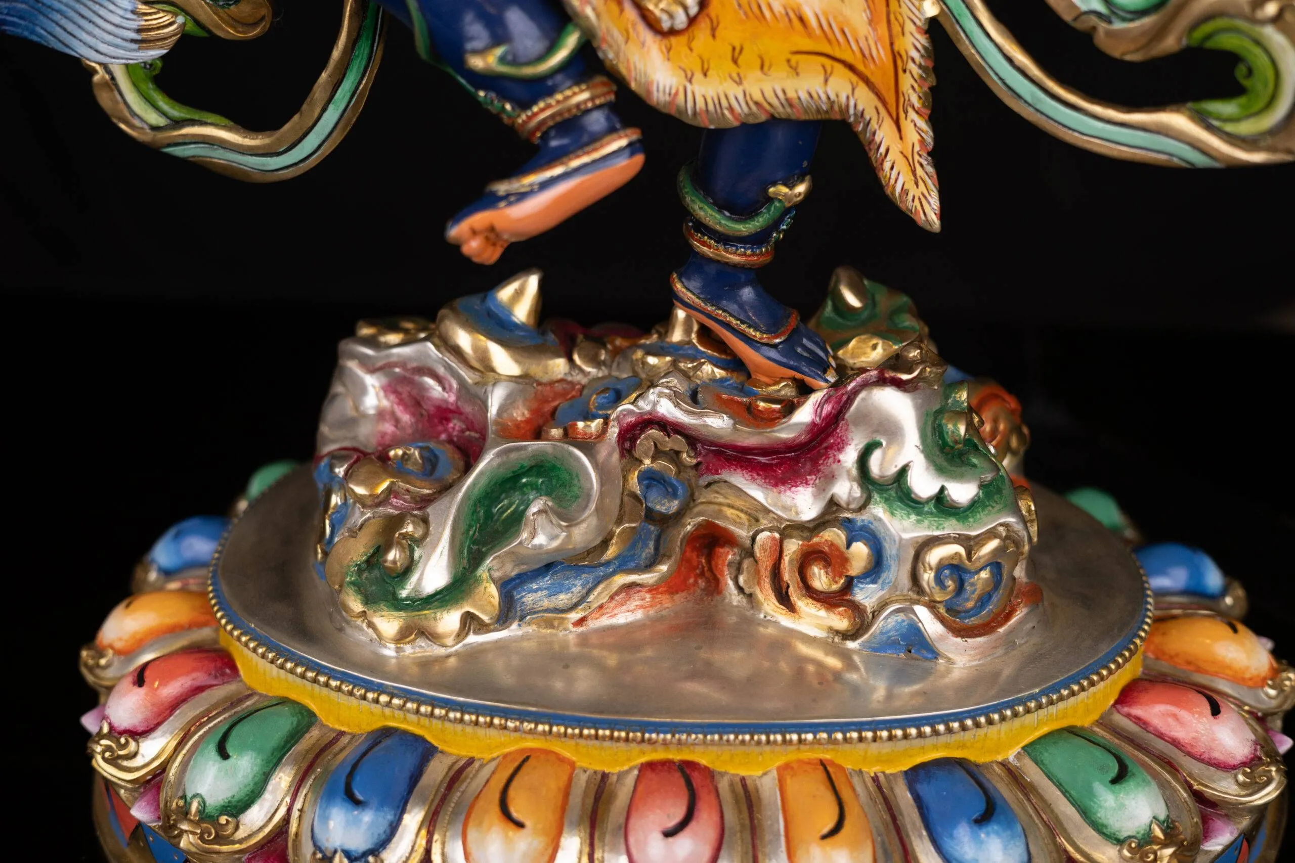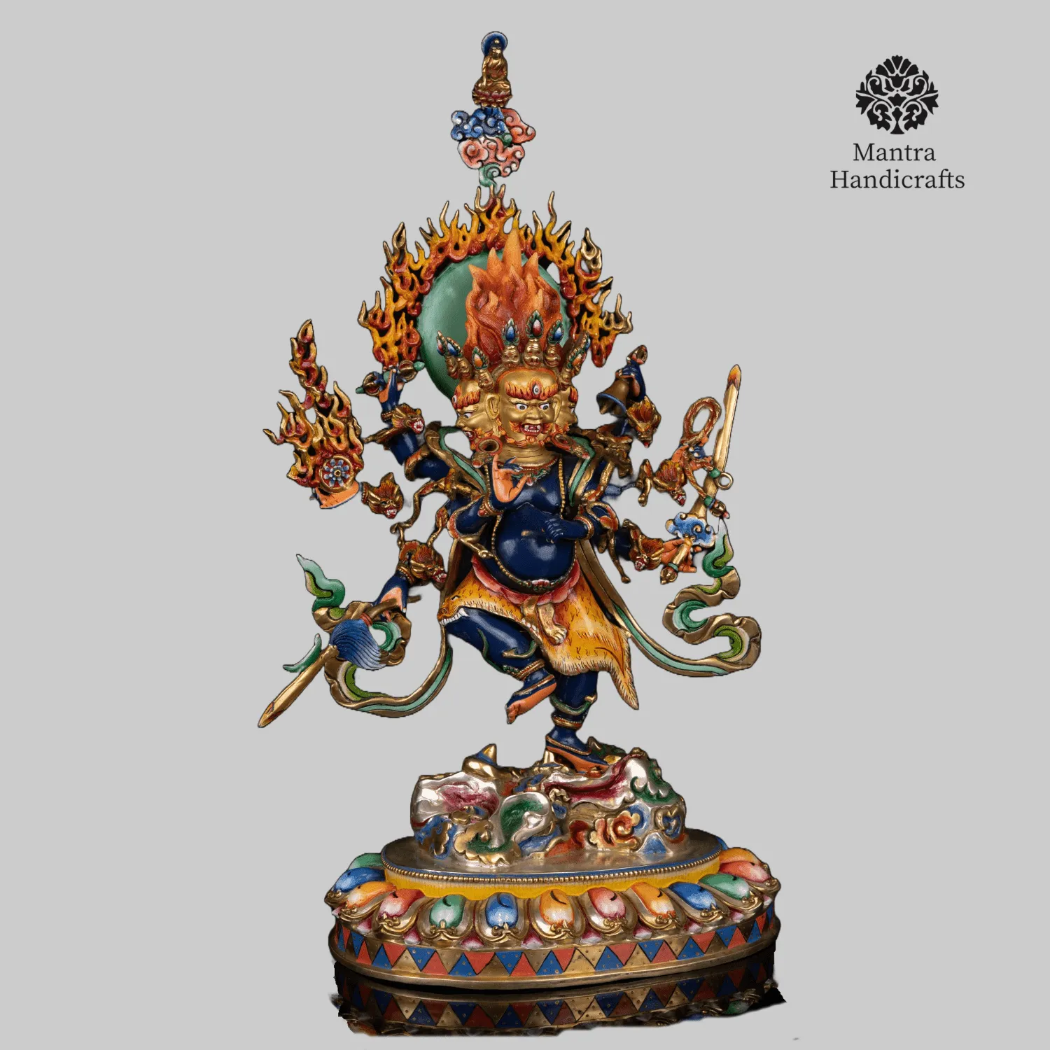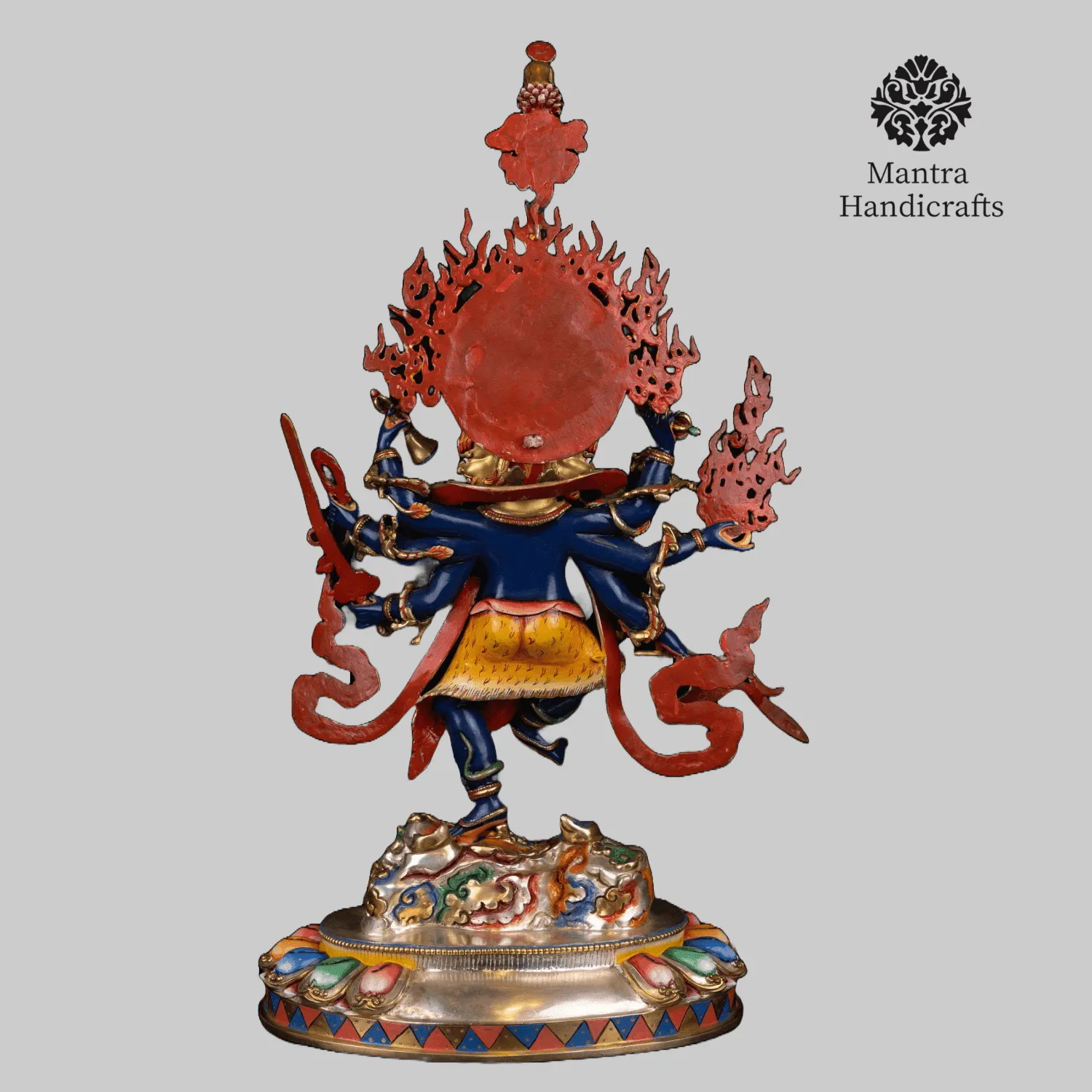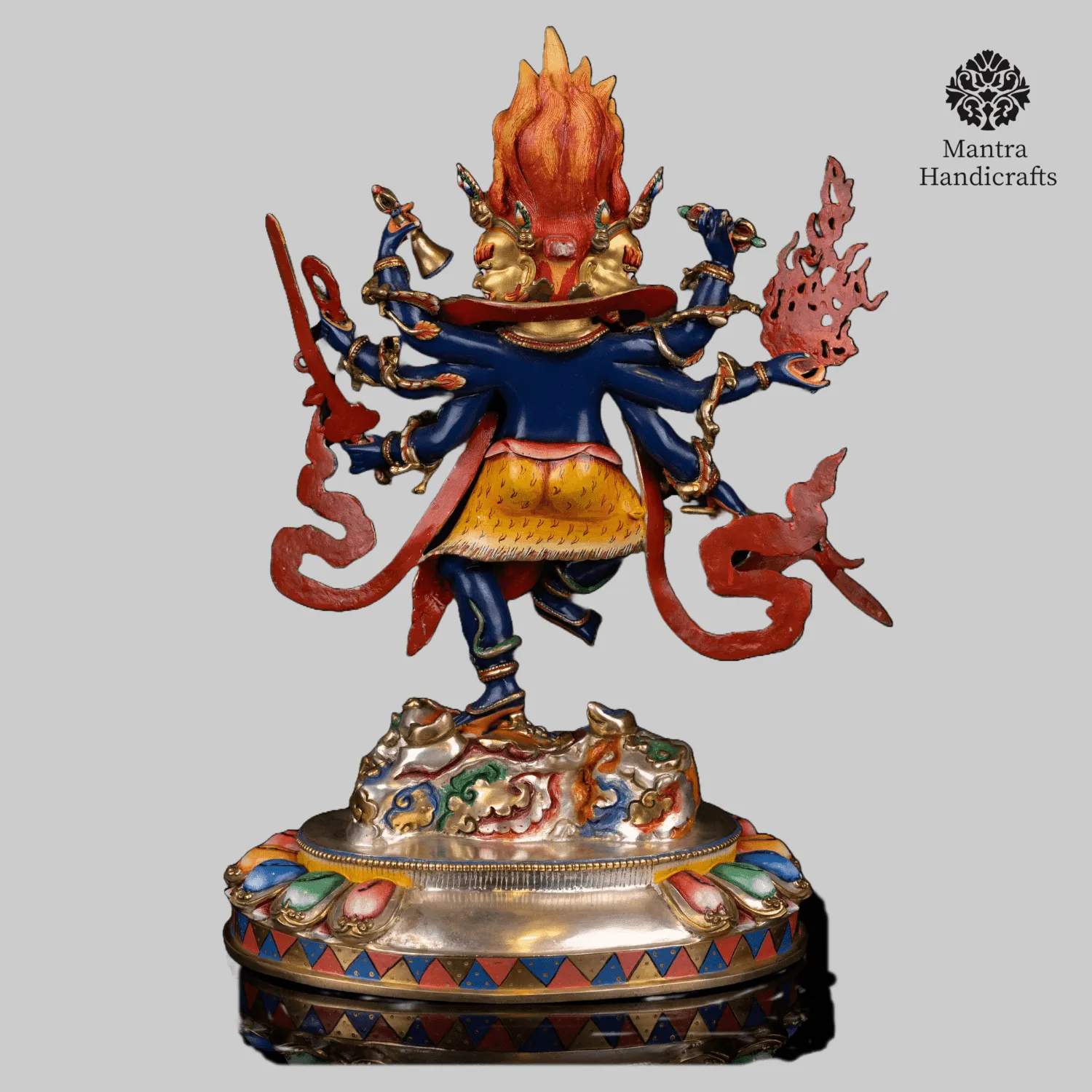Made from high-quality materials, this Akash Bhairav statue reflects the vibrancy and depth of the Tibetan art style, featuring stunning colors and textures that bring this divine figure to life. Whether displayed in your home, office, or meditation space, this sculpture serves as a powerful reminder of strength, protection, and tranquility.