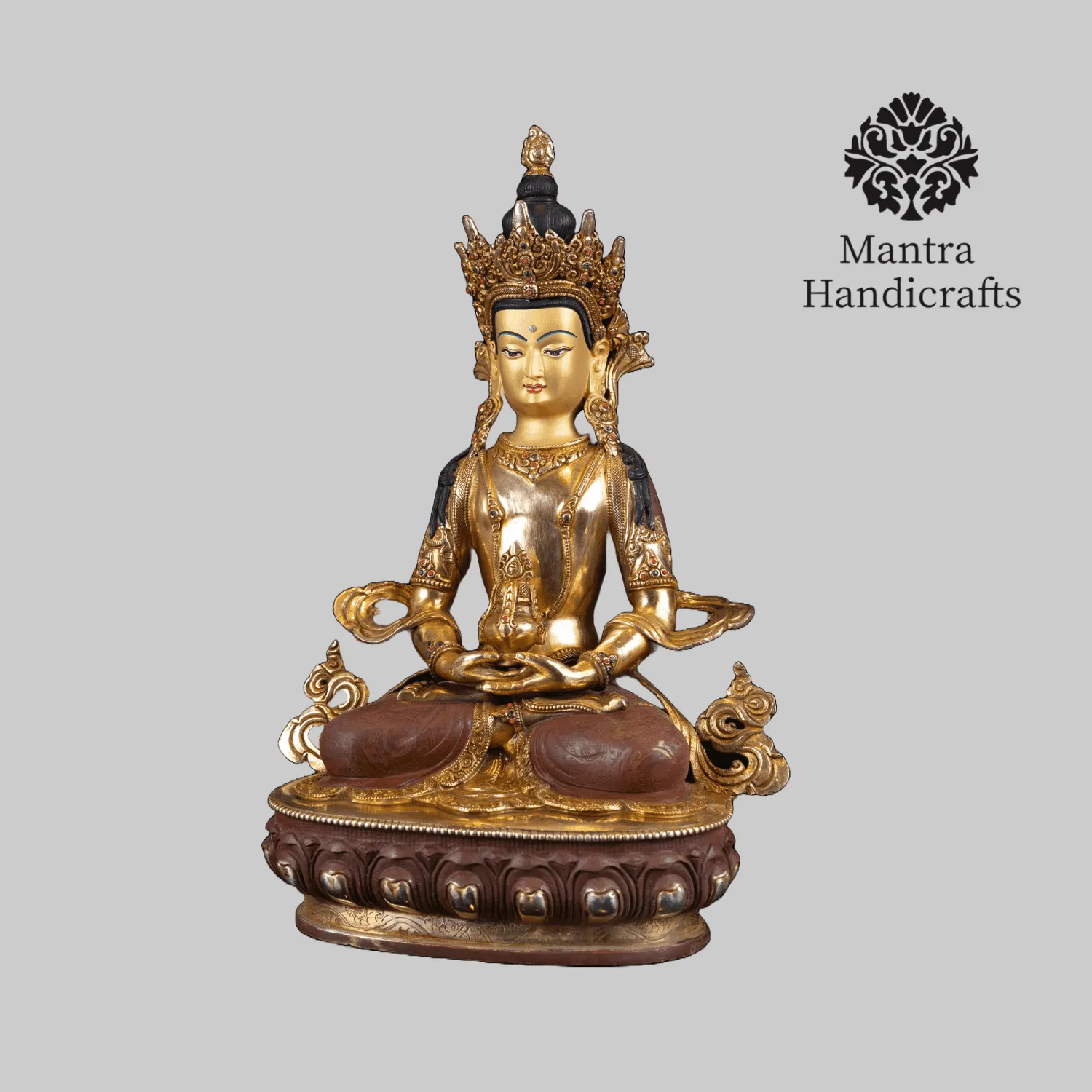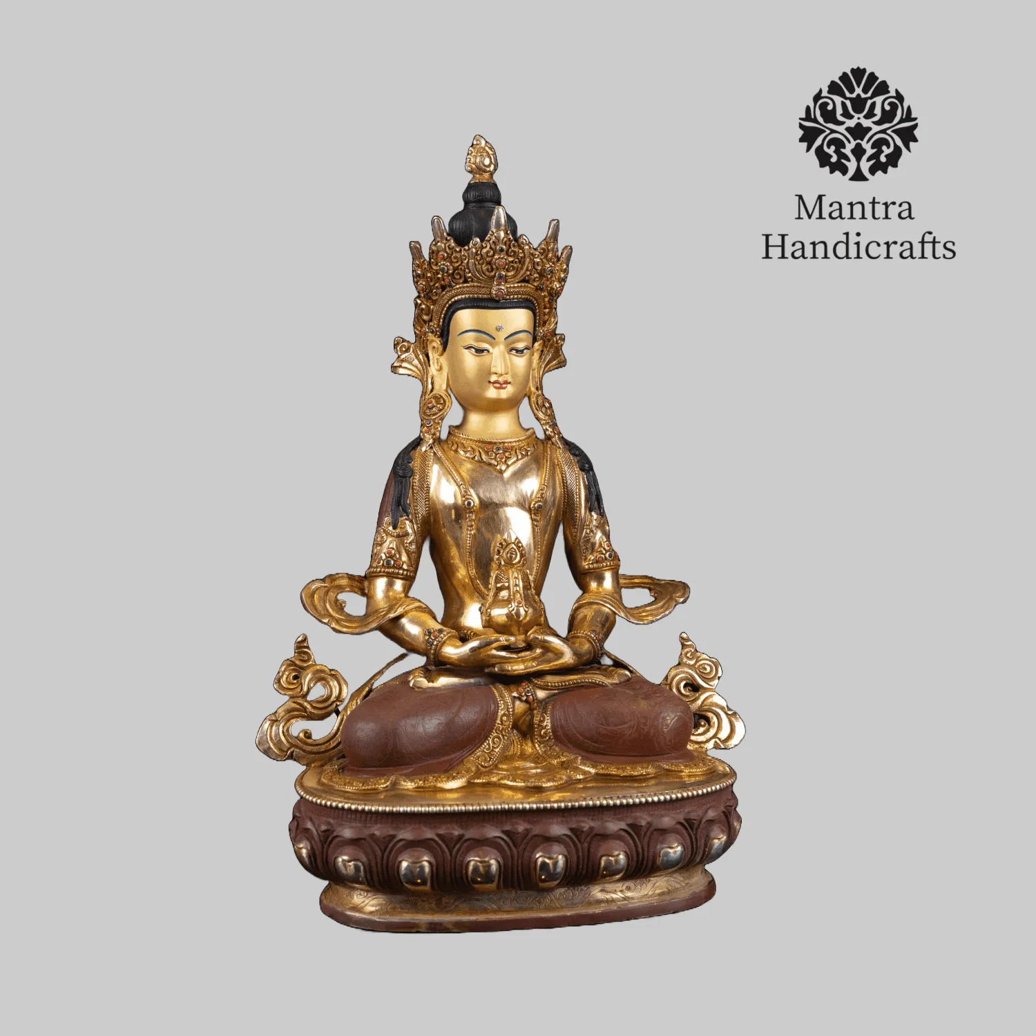 The Aparamita statue represents Amitayus, the Buddha of Infinite Life, known for his association with longevity, merit, and wisdom. Typically depicted in a meditative seated posture (dhyana mudra), Amitayus holds a vessel containing the nectar of immortality (amrita), symbolizing his connection to long life. The statue features a serene expression and is adorned with a crown, jewelry, and flowing robes, highlighting his divine and royal nature. Found in various Buddhist temples, Aparamita statues are central to rituals and practices aimed at promoting health, longevity, and the accumulation of merit.