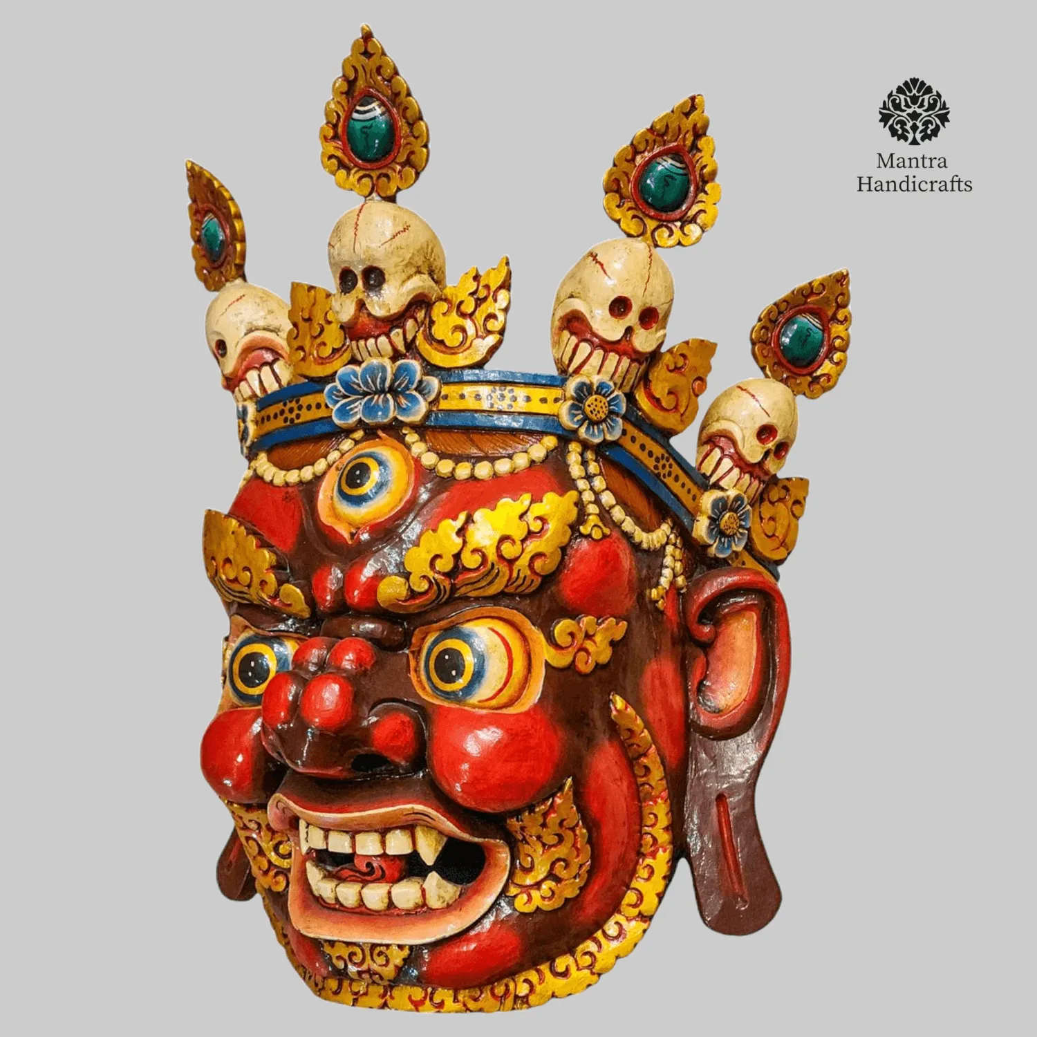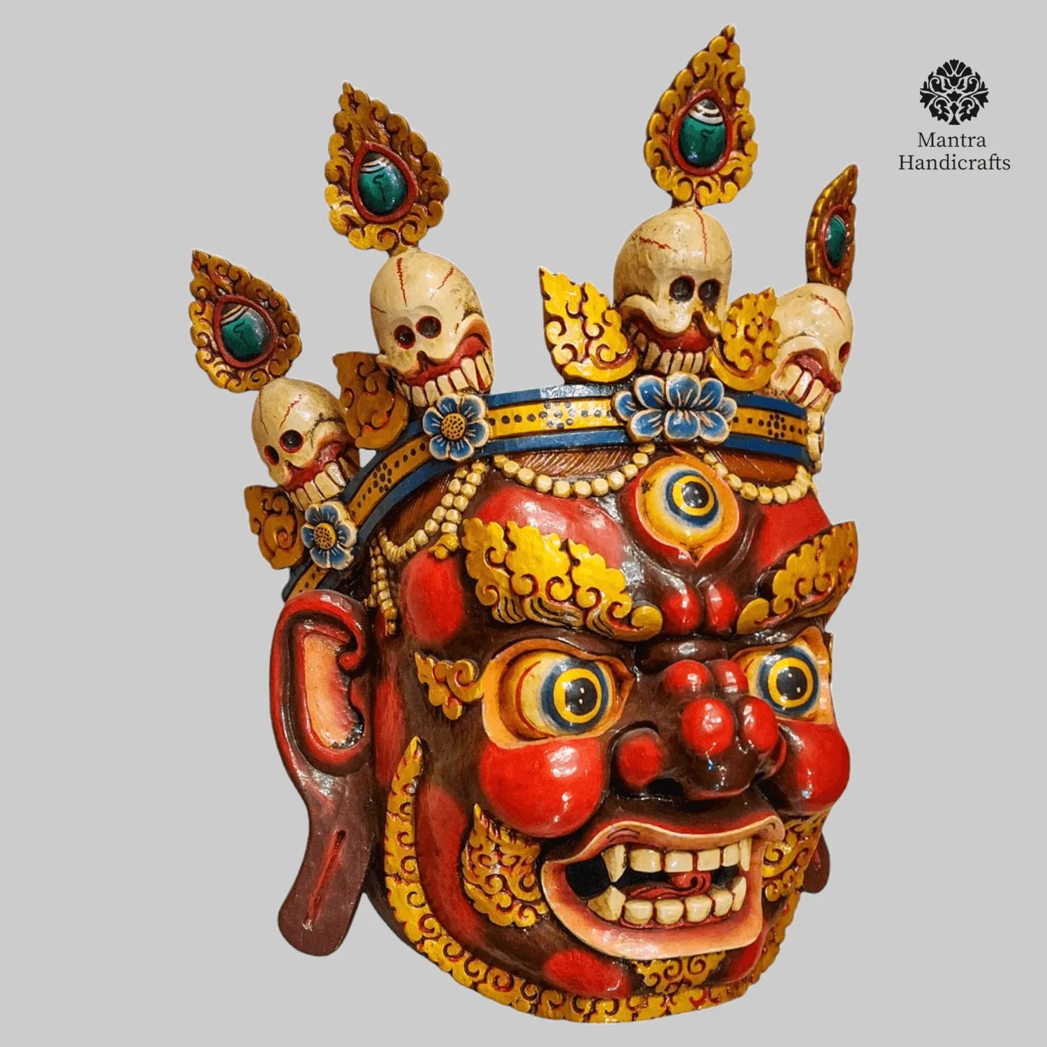 In Nepal, Bhairav masks are not just decorative but also serve religious and cultural purposes, being prominently displayed during festivals such as Indra Jatra. They are used in rituals, ceremonies, and as protective talismans to ward off negative energies. Beyond their spiritual role, these masks are celebrated as unique works of art, reflecting the rich heritage of Nepalese craftsmanship.