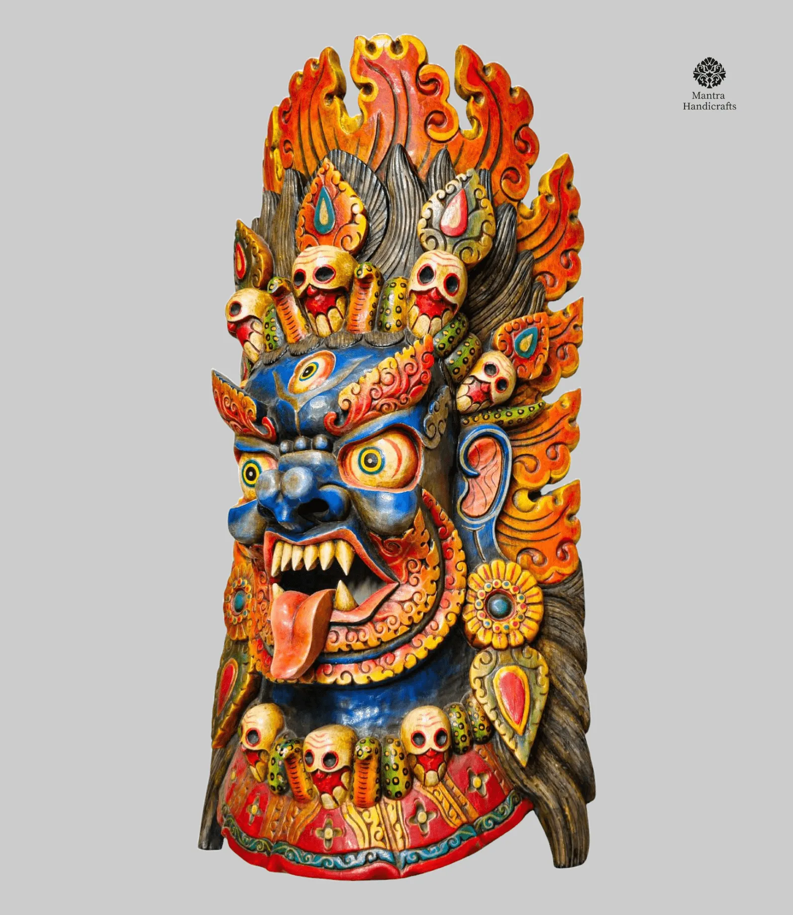 Bhairav Wooden Mask | Thangka Painted Wall Decor