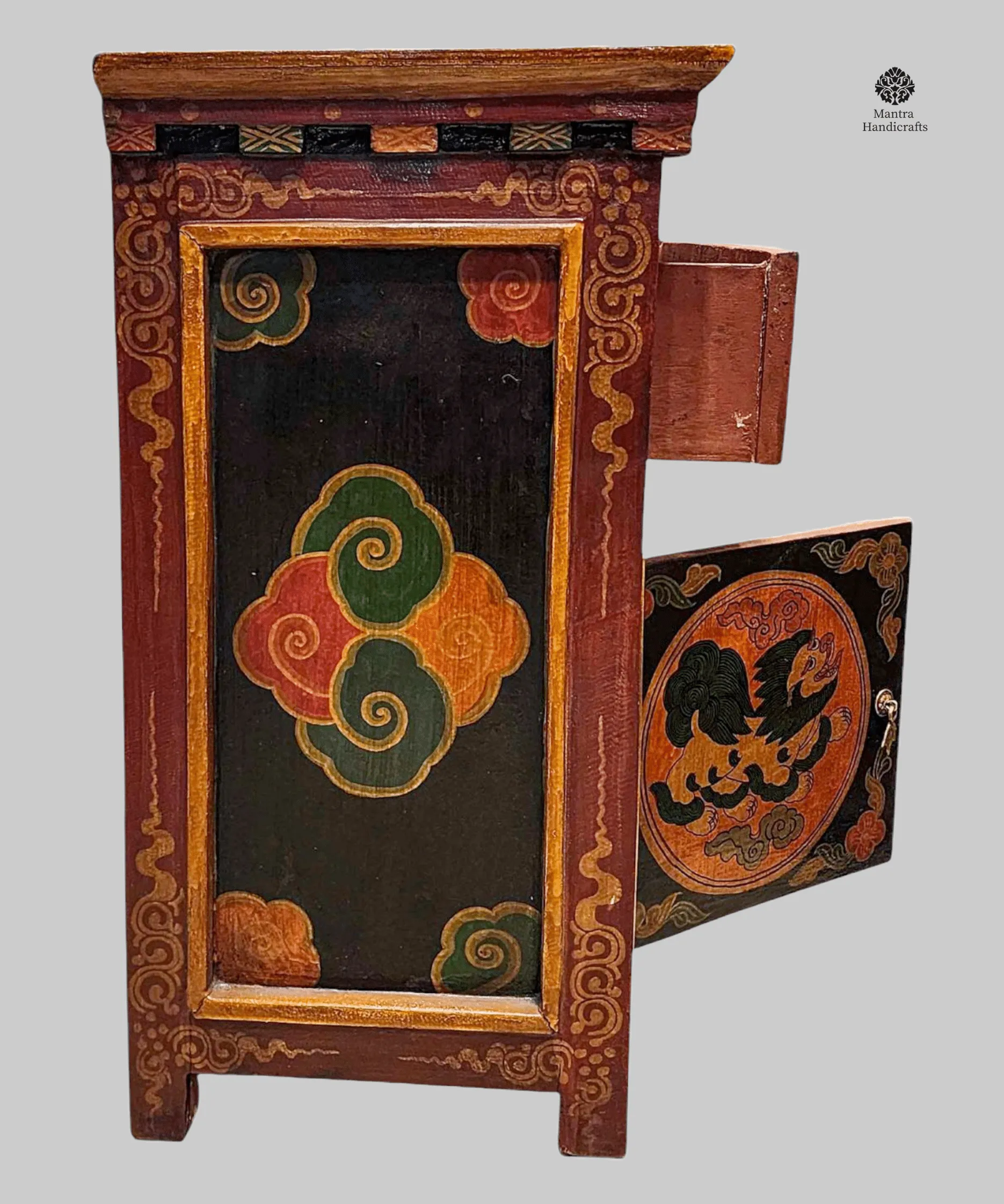 This cabinet is not only a functional furniture item but also a work of art that reflects the spiritual and artistic traditions of Tibet. It would be a wonderful addition to a living room, bedroom, or even a meditation space, bringing a sense of history and culture into your home.