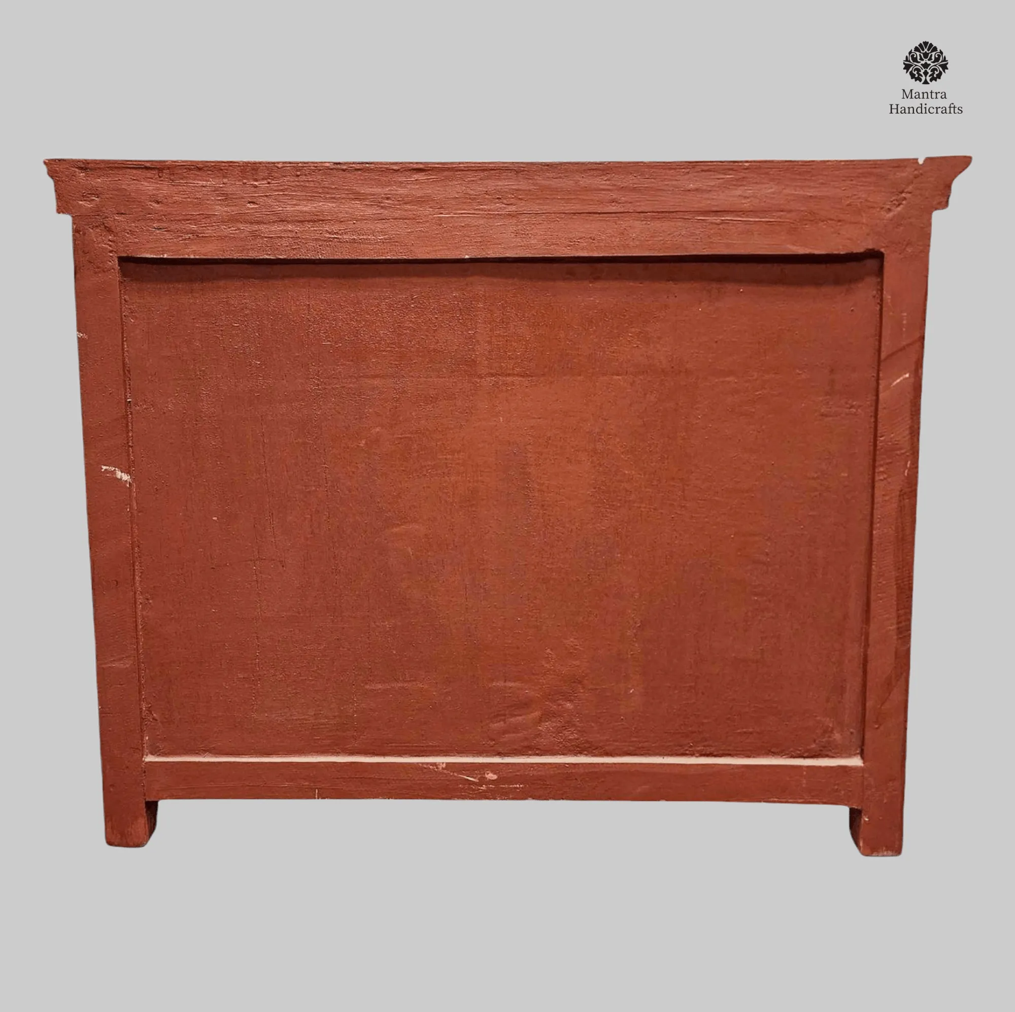 The cabinet is both functional and decorative, featuring 1 drawer and 2 doors for storage, making it a practical addition to any space. The vibrant colors and detailed hand-painted motifs make it a unique and eye-catching piece, perfect for adding a touch of exotic elegance to your home or as a statement piece in a collection of ethnic art.
