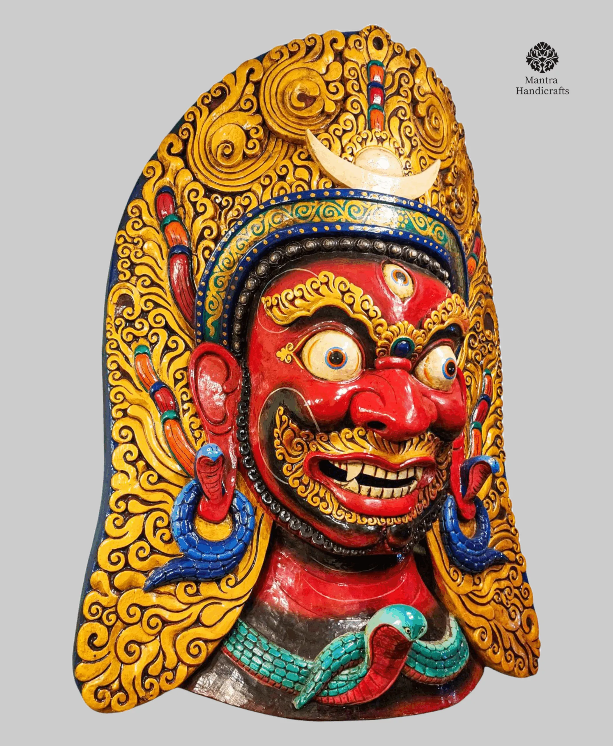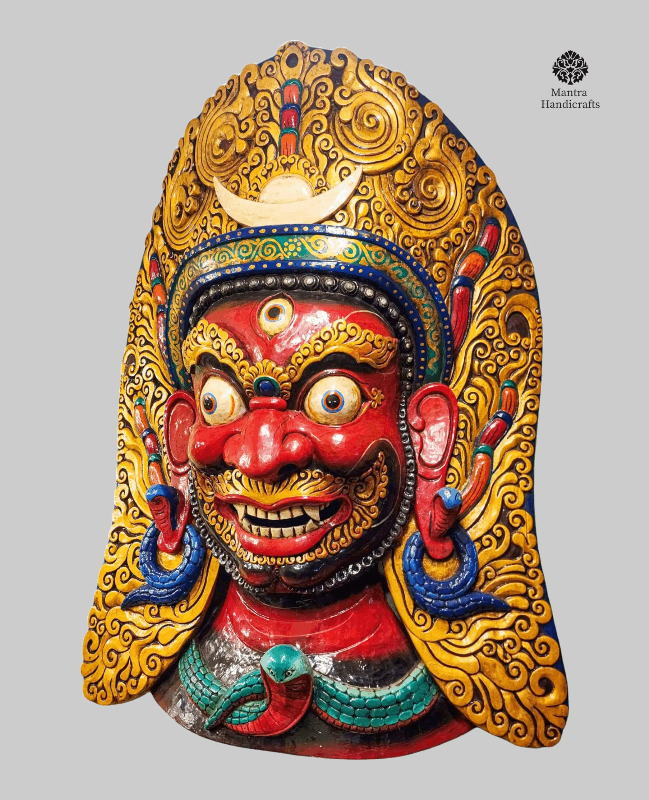 Handmade Bhairab Wooden Mask | Wrathful Guardian Wall Art
