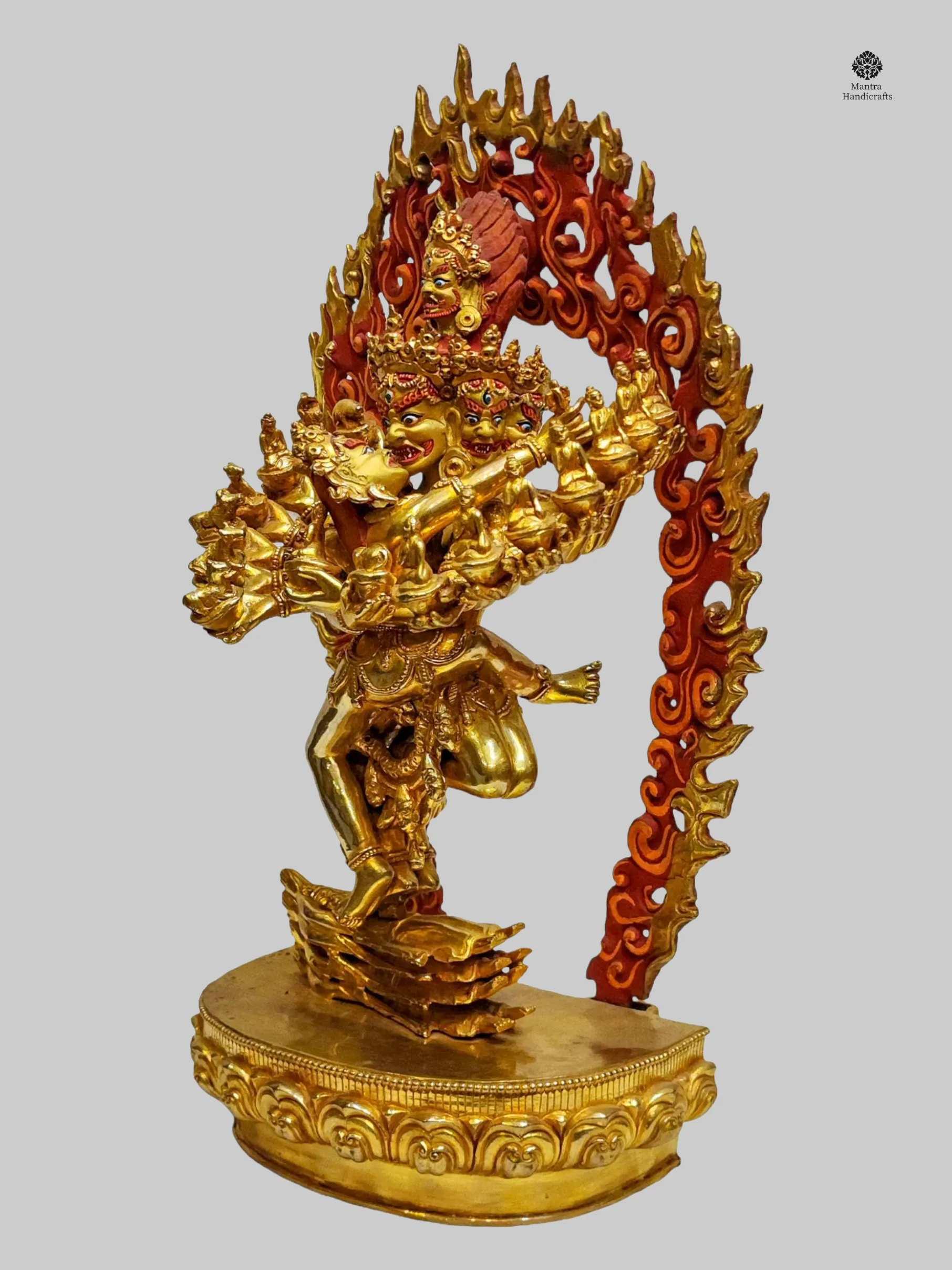 This powerful Hevajra statue depicts one of the most revered tantric yidam deities in Vajrayana Buddhism. Hevajra is honored as a protector, compassionate guide, and source of transformative wisdom, embodying the union of compassion and emptiness that leads practitioners to ultimate liberation.