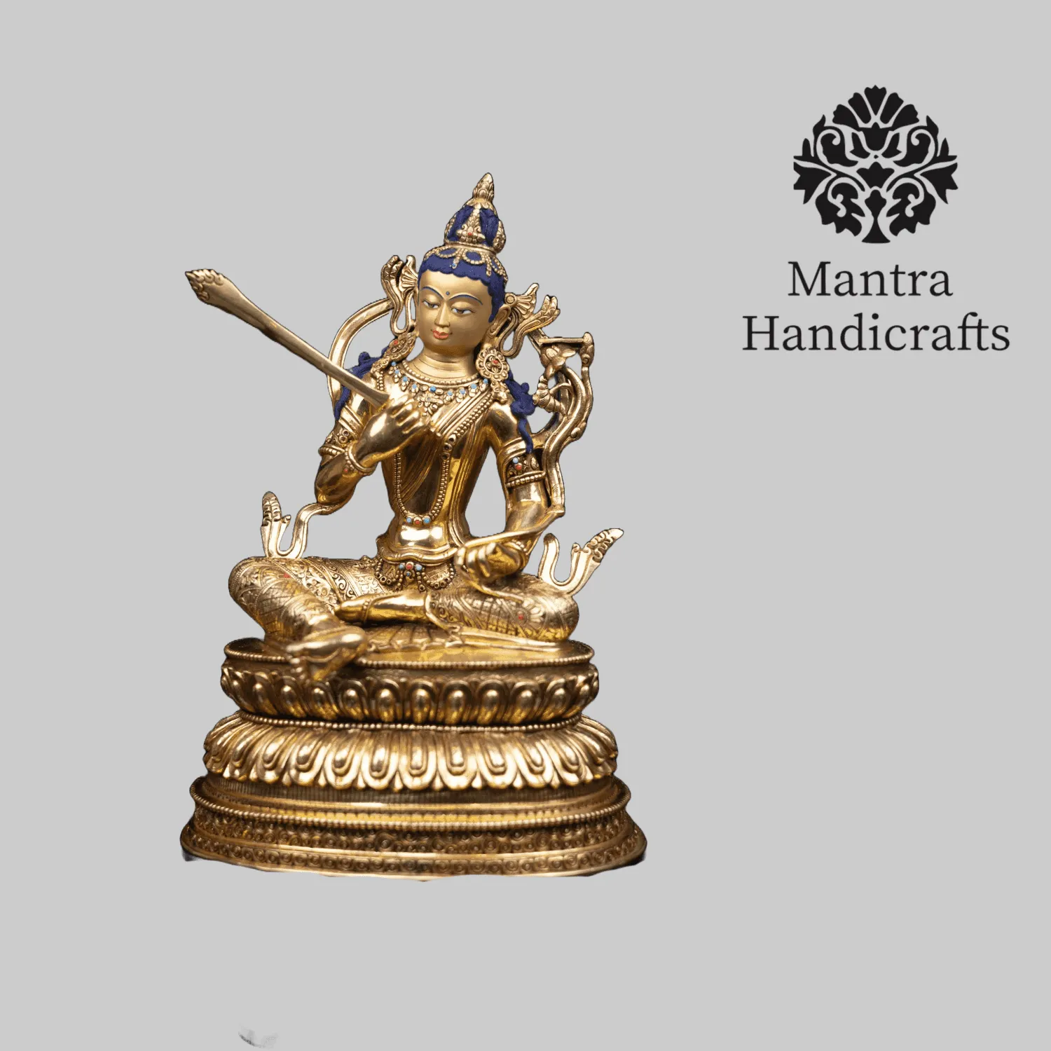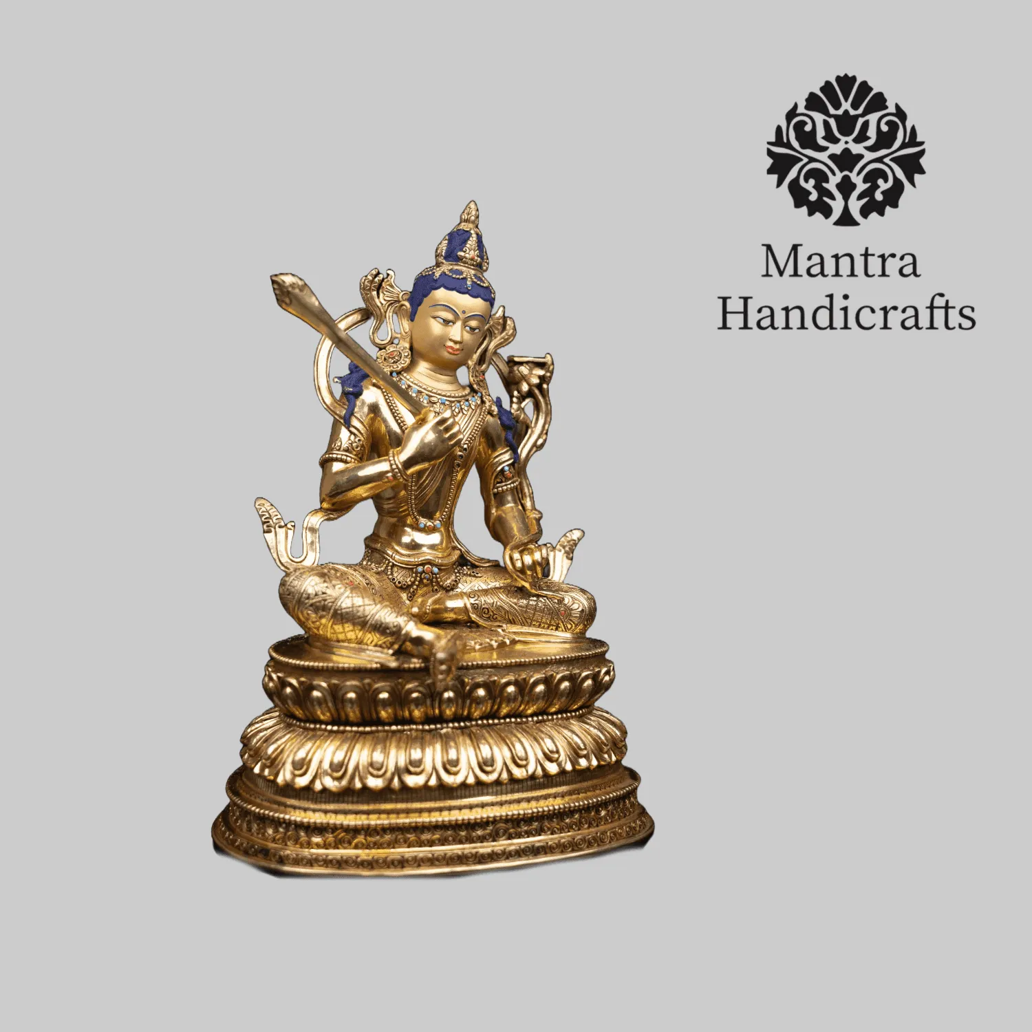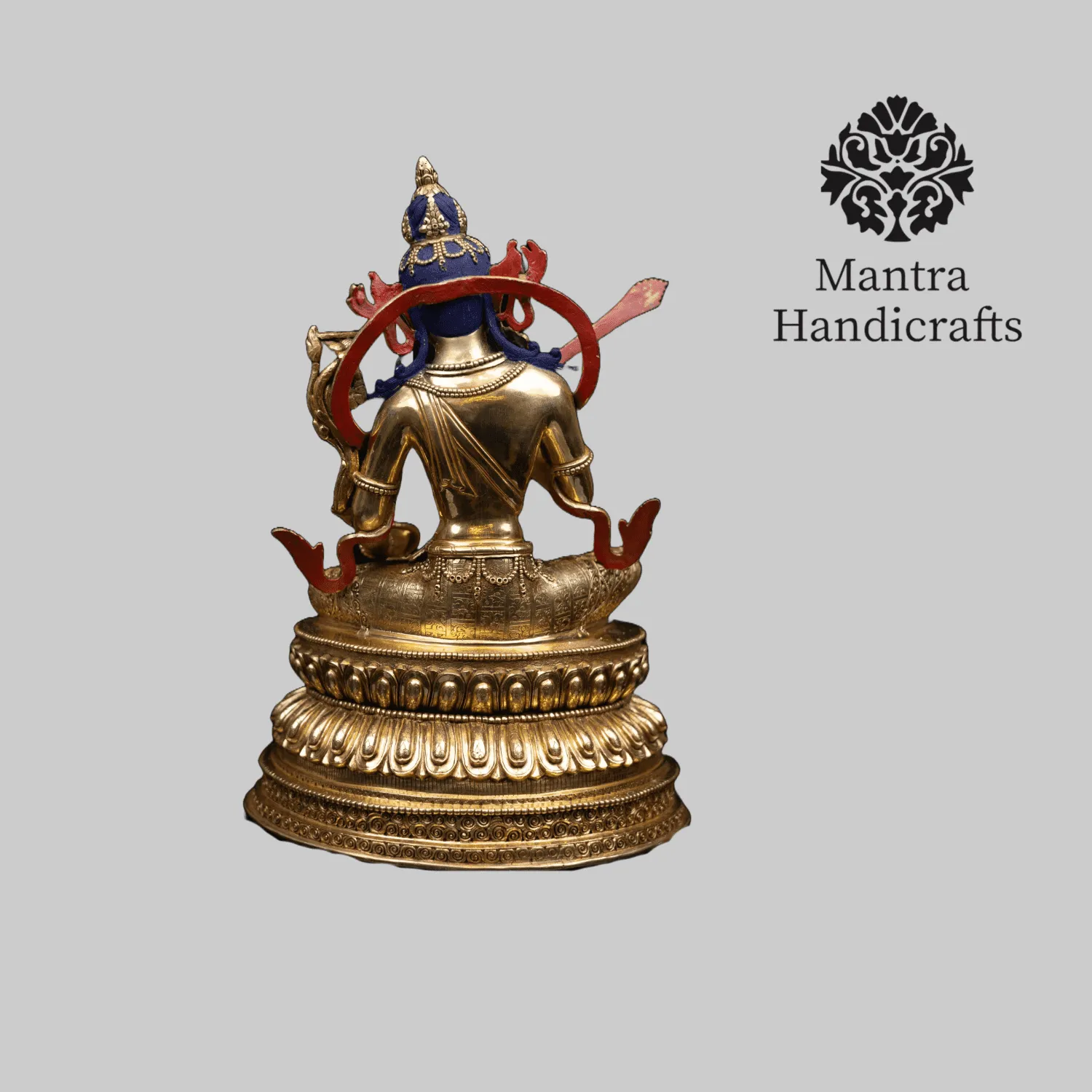 The Manjushree statue is a revered representation of the bodhisattva of wisdom in Mahayana Buddhism, often depicted holding a sword in one hand and a scripture in the other. Symbolizing the cutting of ignorance and the pursuit of knowledge, this statue embodies the essence of enlightenment and spiritual insight. Manjushree is particularly venerated in Tibetan Buddhism, where his figure is believed to provide guidance and clarity to practitioners on their path to awakening.