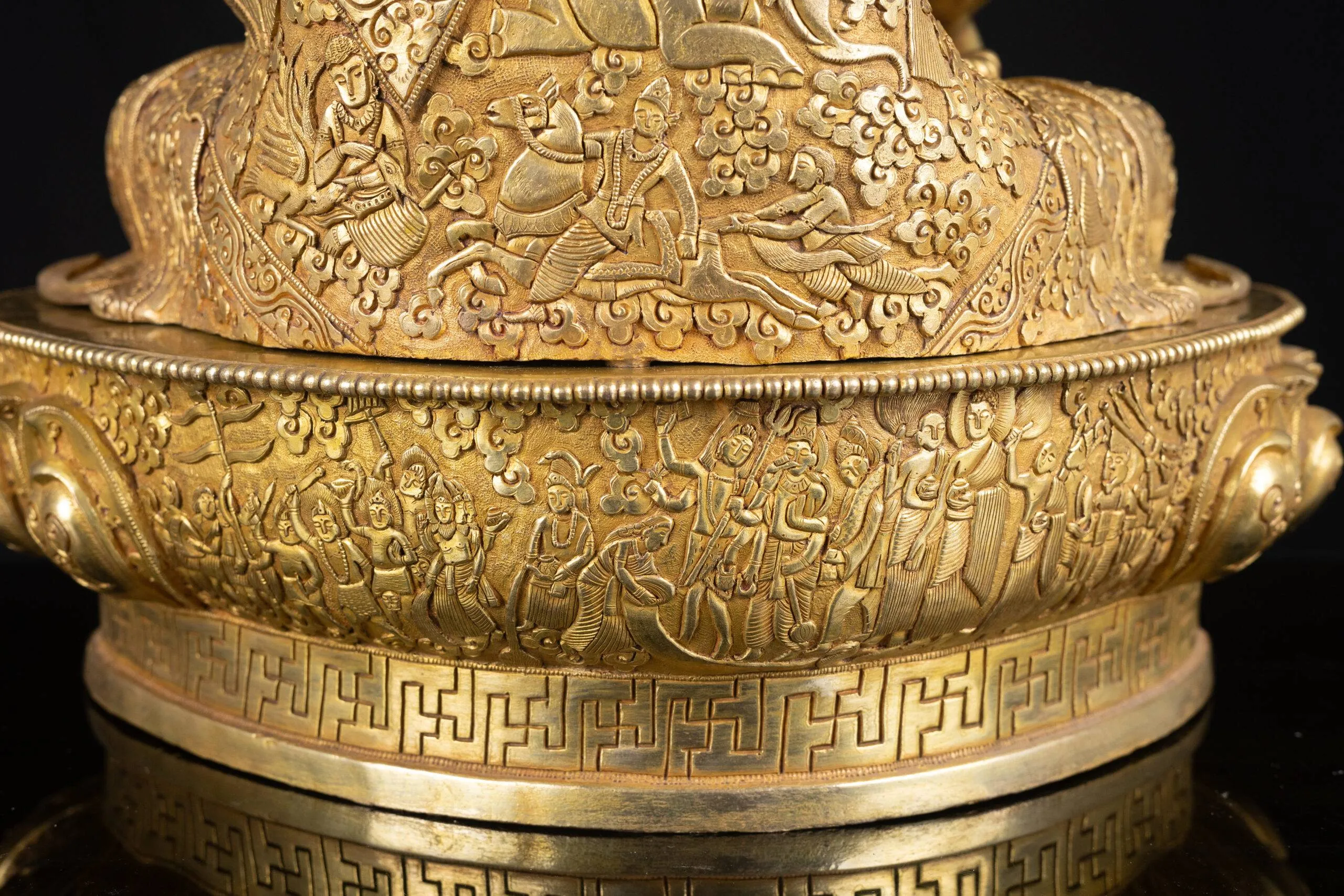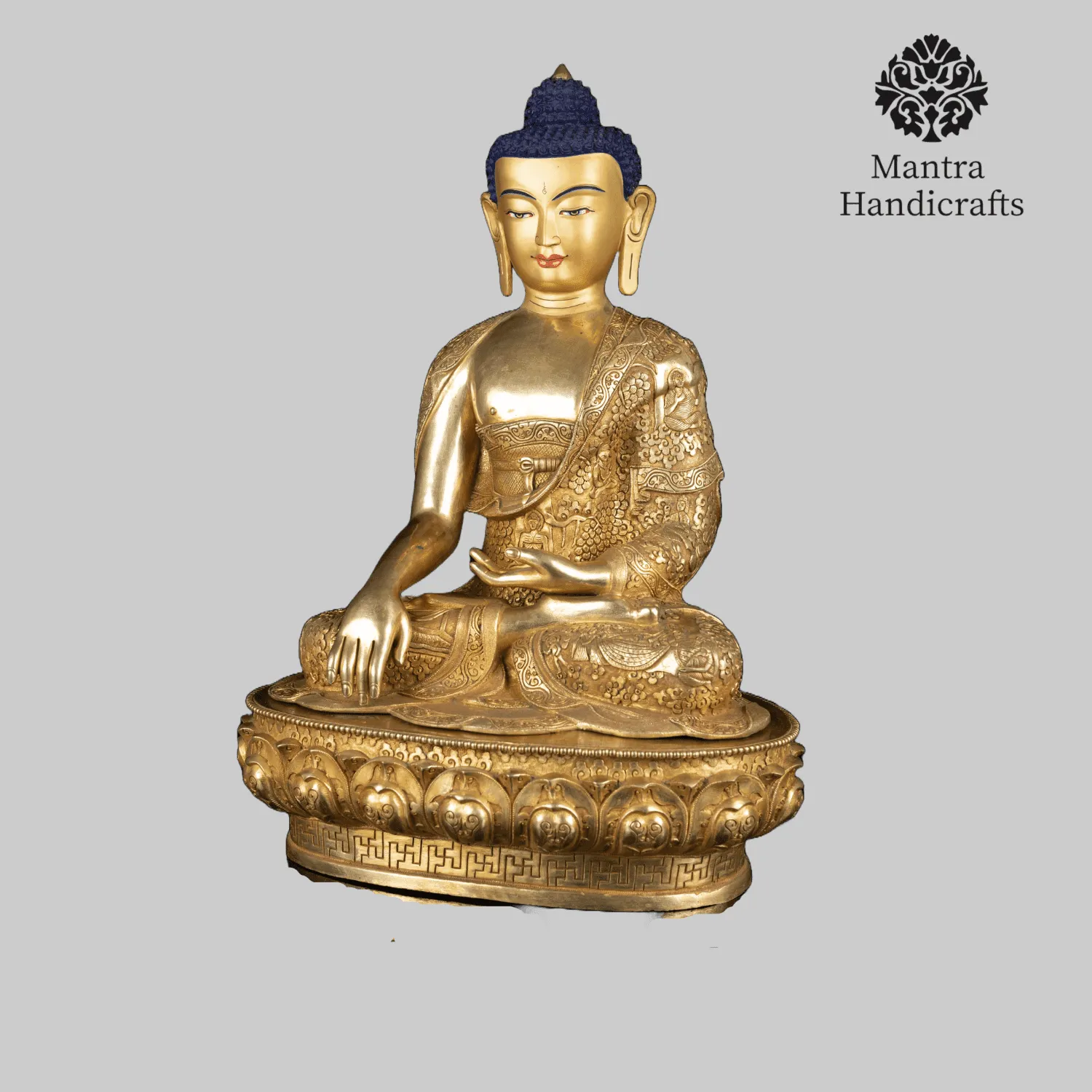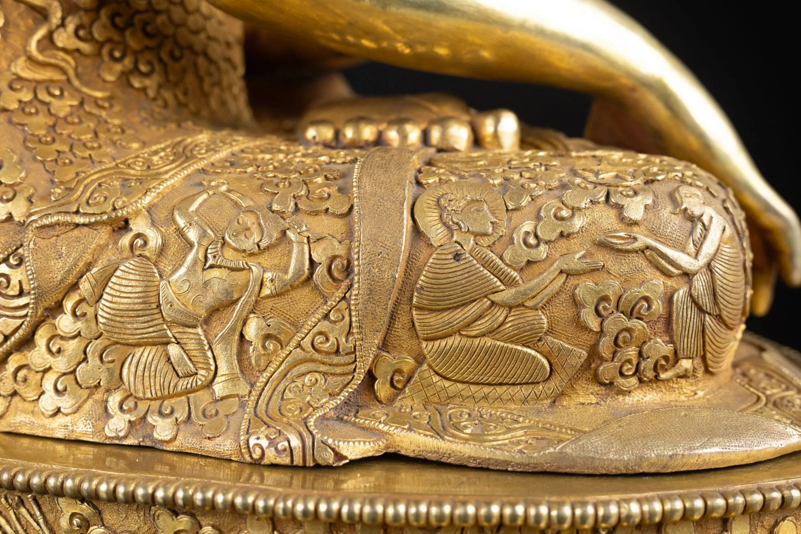 The masterpiece statue of Shakyamuni Buddha, intricately carved, vividly portrays the key events of his life. Beginning with his birth in Lumbini, the statue captures the serene scene of Queen Maya giving birth under a sal tree. As Siddhartha Gautama, the young prince, renounces his royal life to seek enlightenment, the statue depicts his departure from the palace walls and encounters with suffering that led him to his path. Meditating under the Bodhi tree until achieving enlightenment, Shakyamuni Buddha’s serene expression and posture convey profound peace and wisdom. Finally, the statue embodies his teachings and the moment of his passing into Mahaparinirvana, encapsulating the essence of his transformative journey.