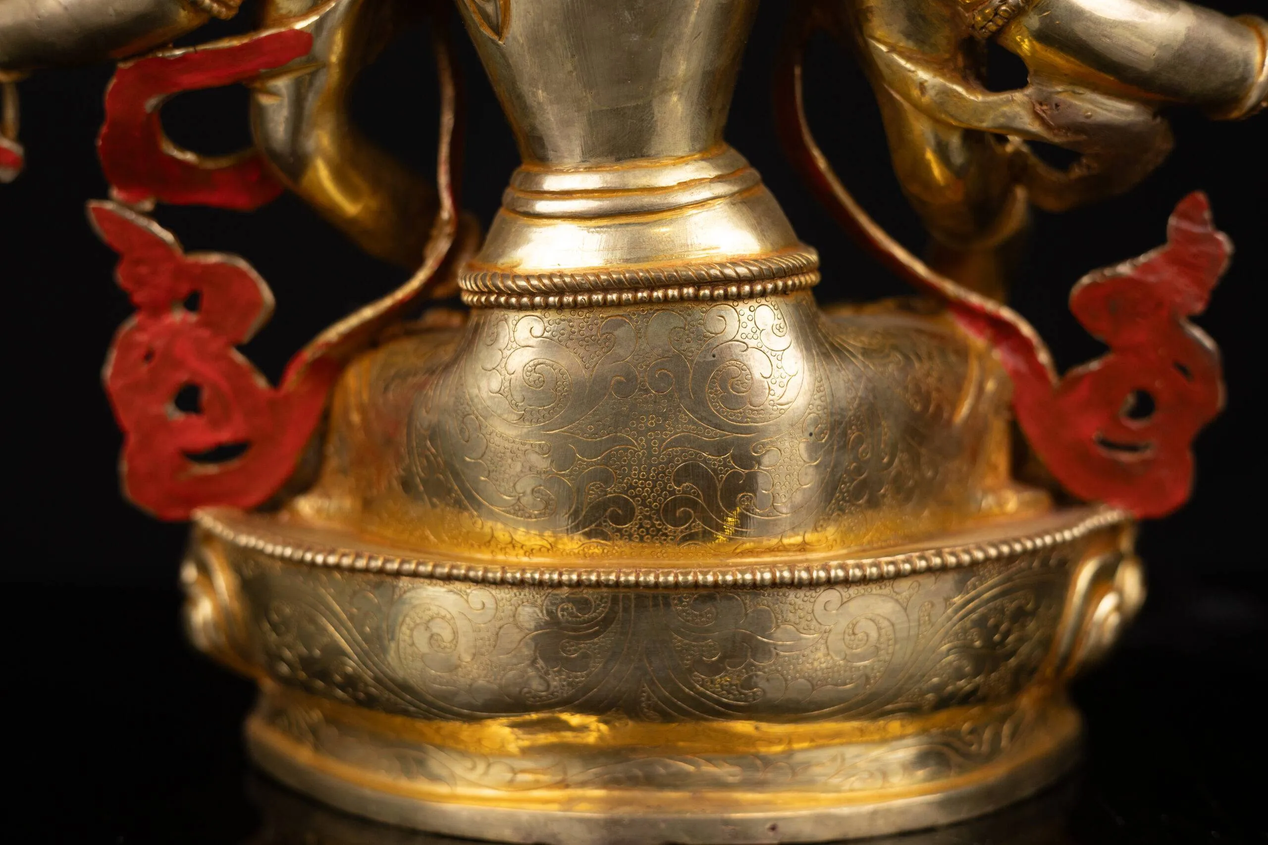The Namgyalma Statue represents the goddess of longevity and compassion in Tibetan Buddhism. This exquisitely crafted statue captures the serene and compassionate presence of Namgyalma, making it an ideal symbol for a peaceful and harmonious living space. The intricate details and fine craftsmanship of the statue reflect the reverence for Namgyalma and her significance in Buddhist practice. Displaying this statue can serve as a reminder of the values of longevity and compassion in daily life, inspiring a sense of tranquility and empathy. With its captivating design and spiritual significance, the Namgyalma Statue is a meaningful addition to any spiritual or meditation space.