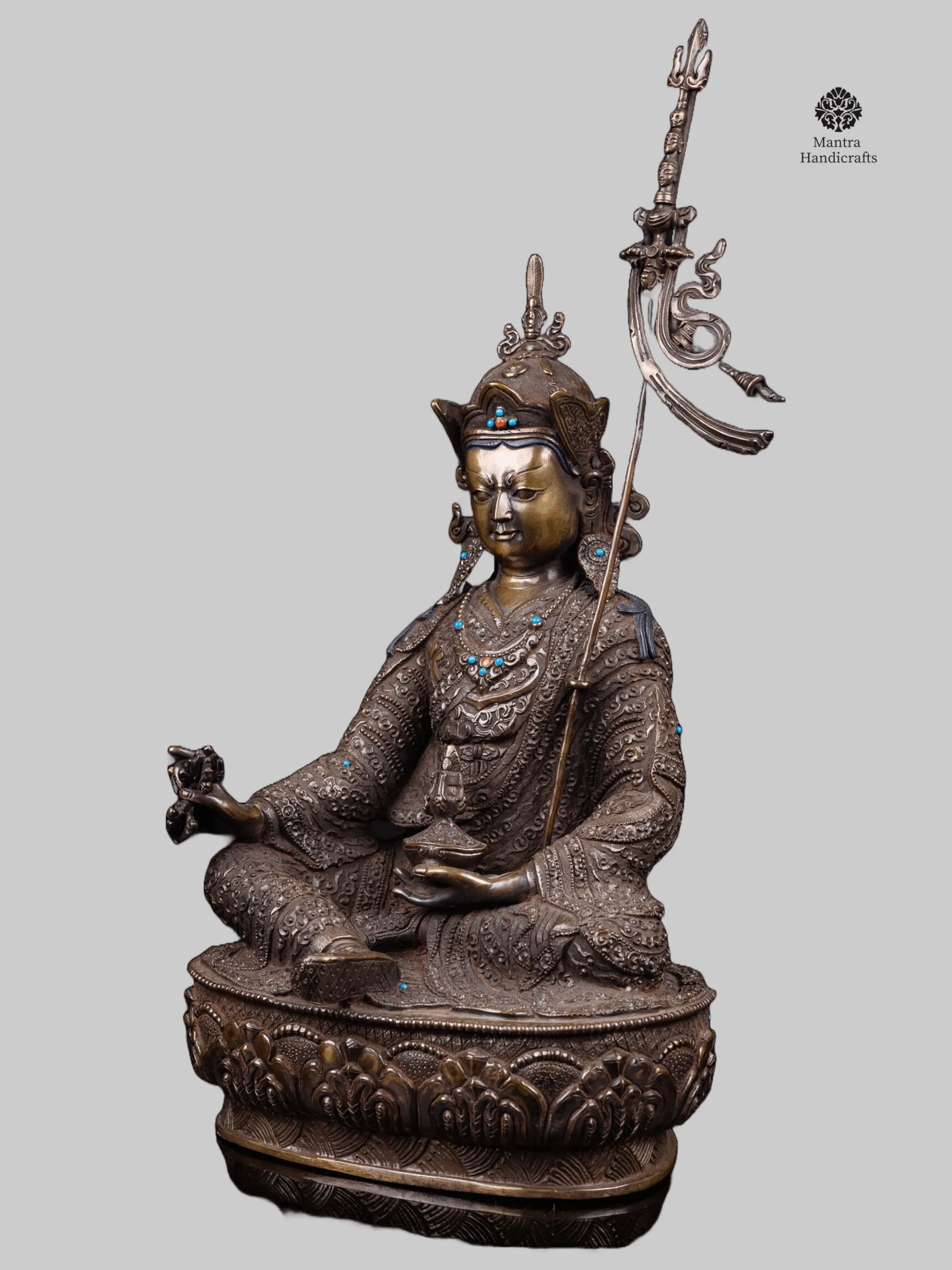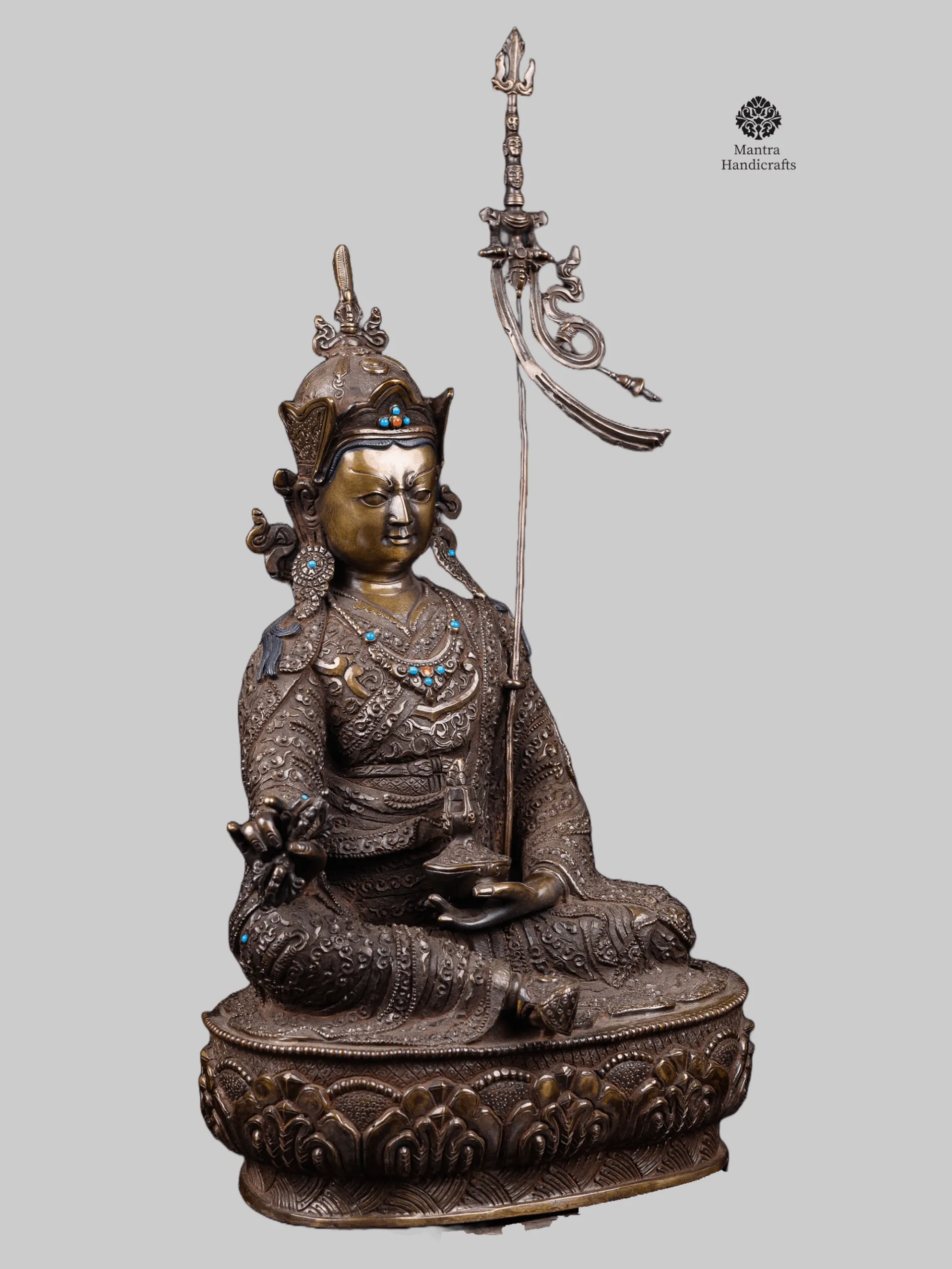 Padmasambhava Statue | Chocolate Oxidized & Stone Inlaid | Lotus-Born Master Padmasambhava Statue | Chocolate Oxidized & Stone Inlaid | Lotus-Born Master