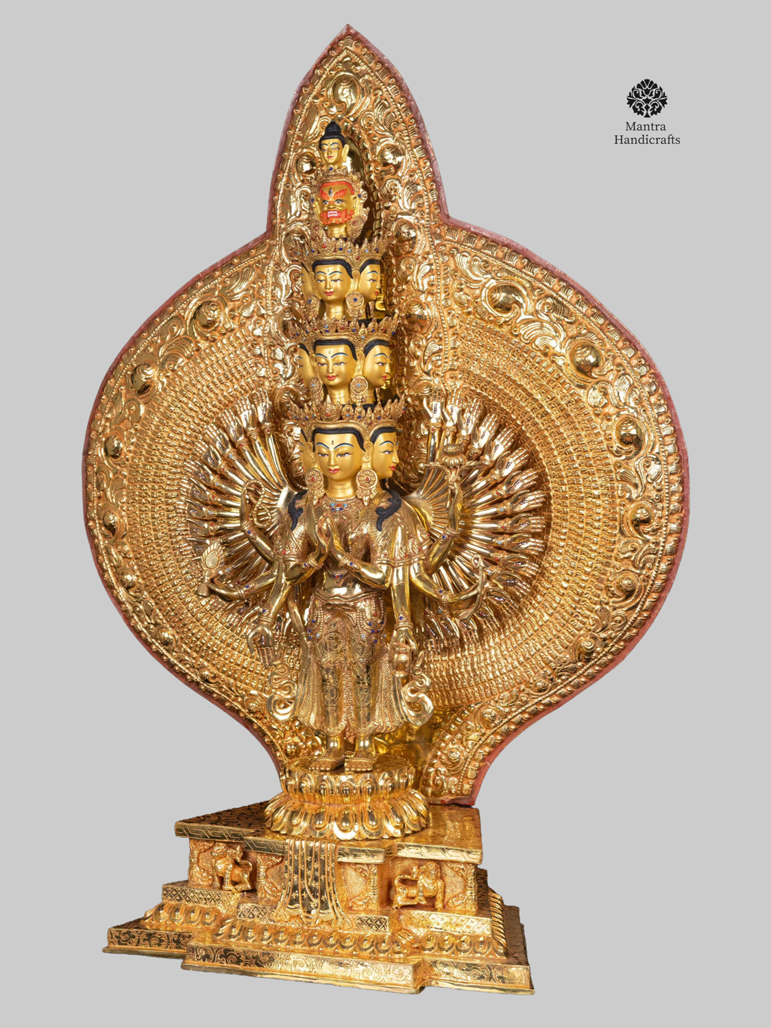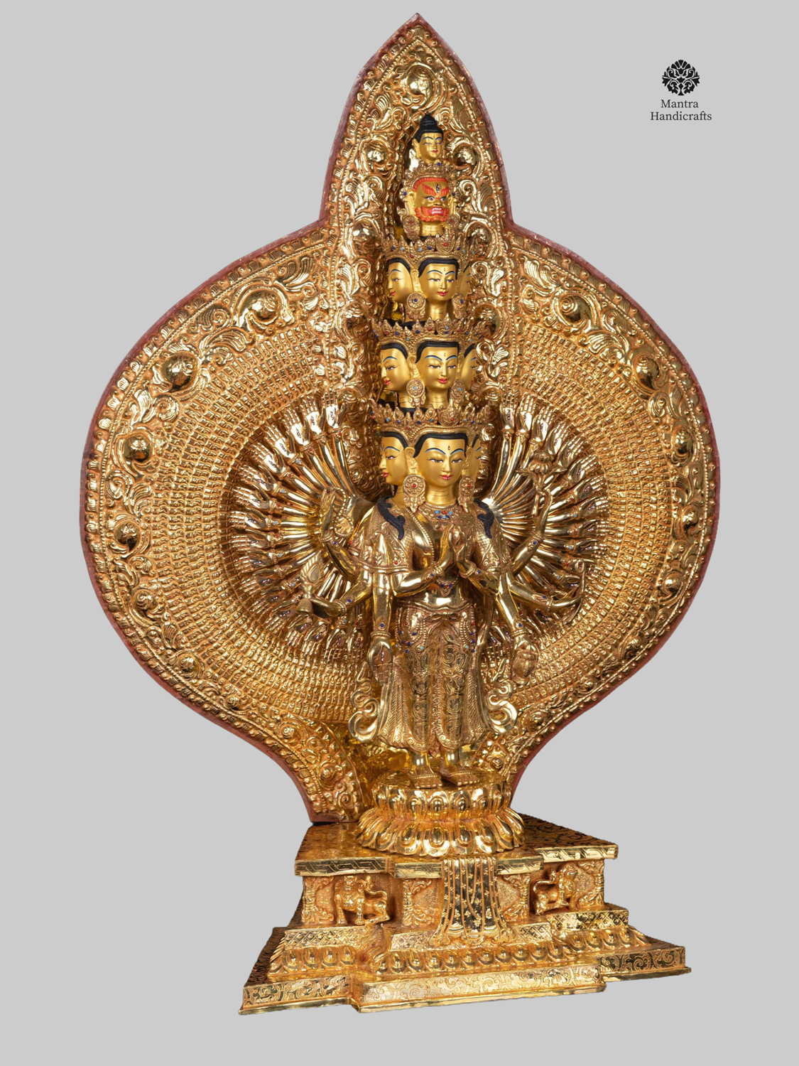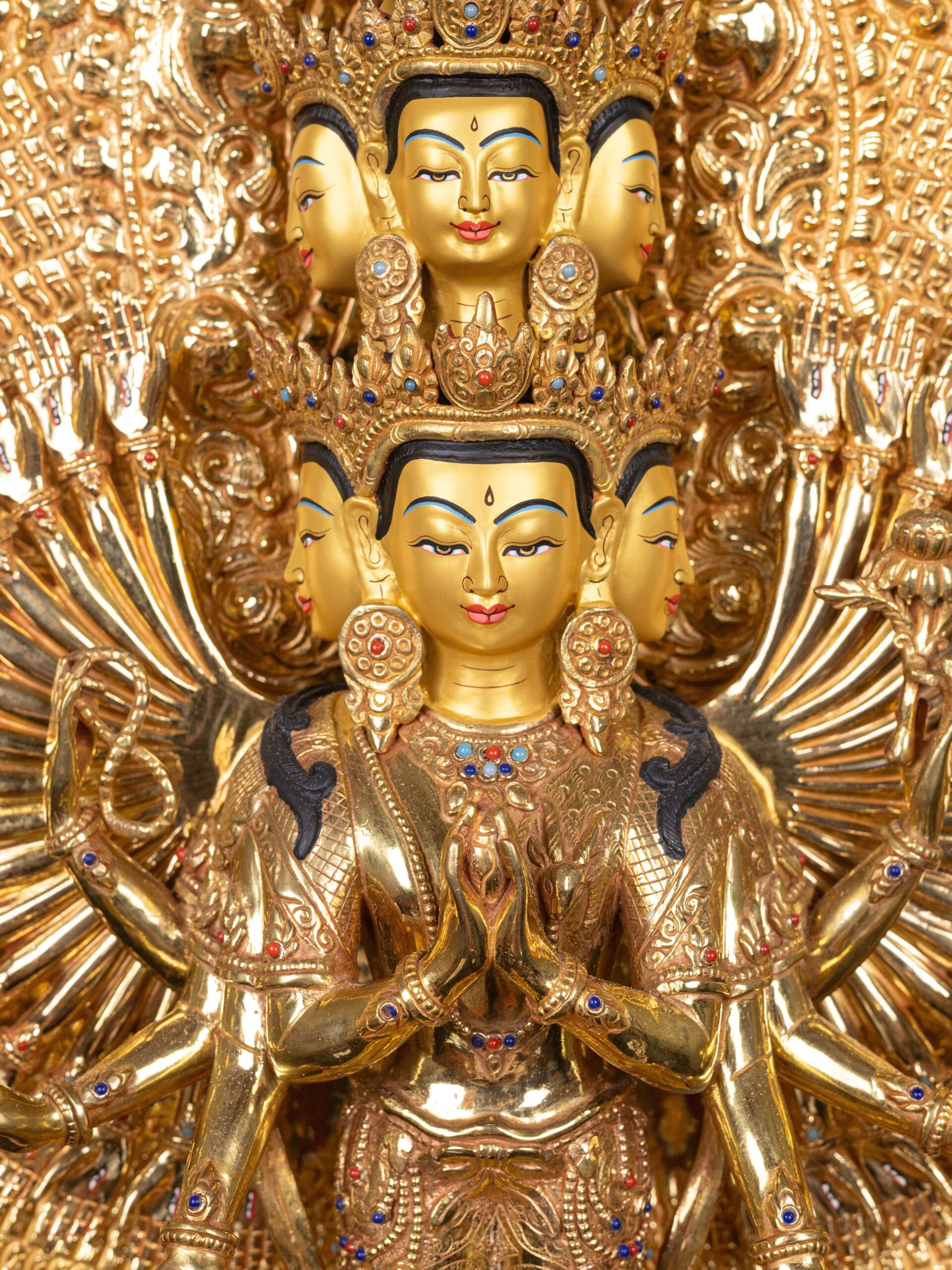Sahasrabhuja Avalokitesvara Statue | 1000 Arms Chenrezig | 24K Gold Gilded