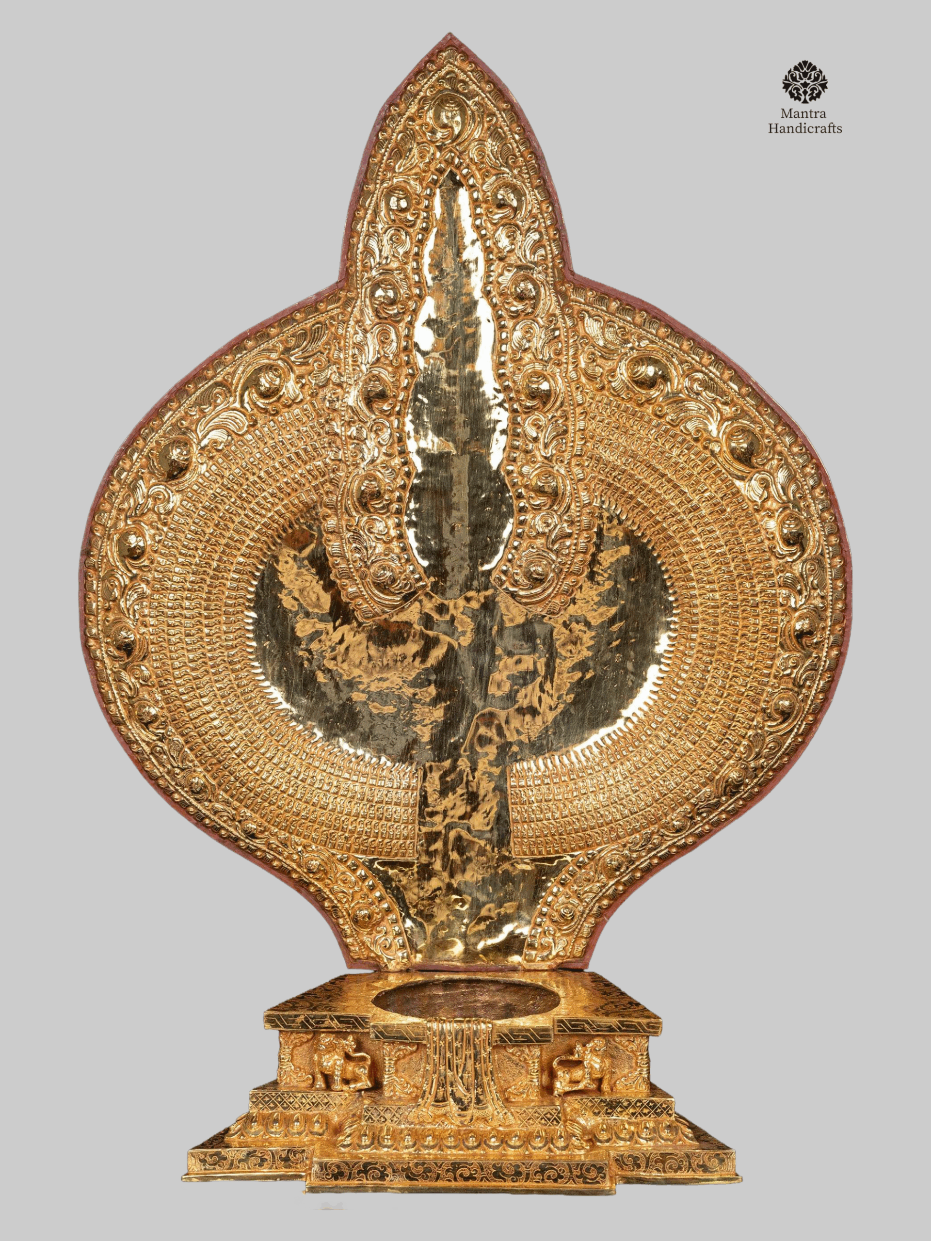 This awe-inspiring Sahasrabhuja Avalokitesvara statue the Thousand-Armed Chenrezig is an exceptional piece of sacred Himalayan artistry handcrafted in Nepal by master sculptors trained in the centuries-old tradition of Tibetan Buddhist metalwork. The statue is skillfully cast from a copper body and lavishly gilded in pure 24K gold, radiating a warm, divine glow that enhances its spiritual presence. The serene face is expertly hand-painted, embodying the infinite compassion of the Bodhisattva.