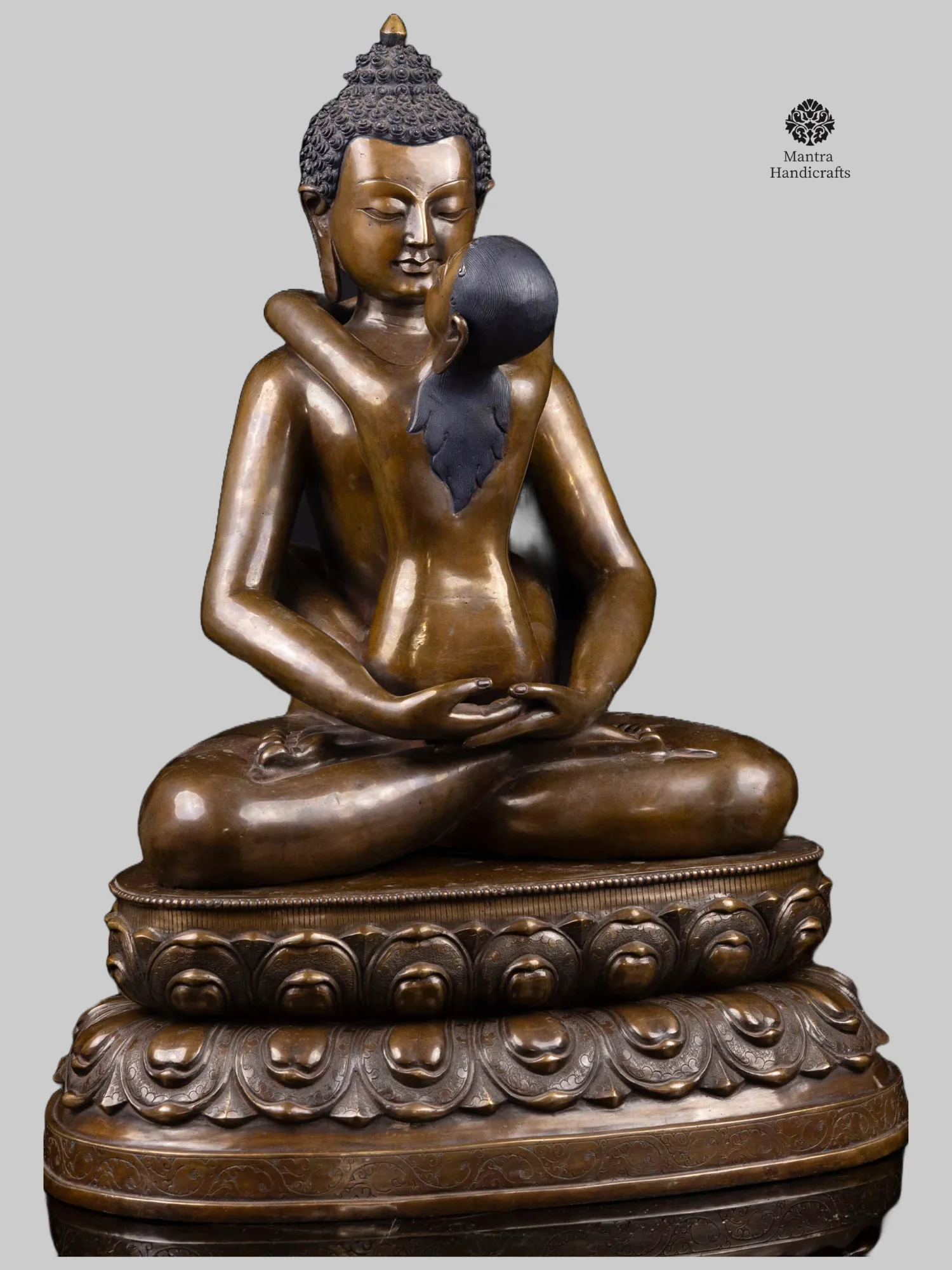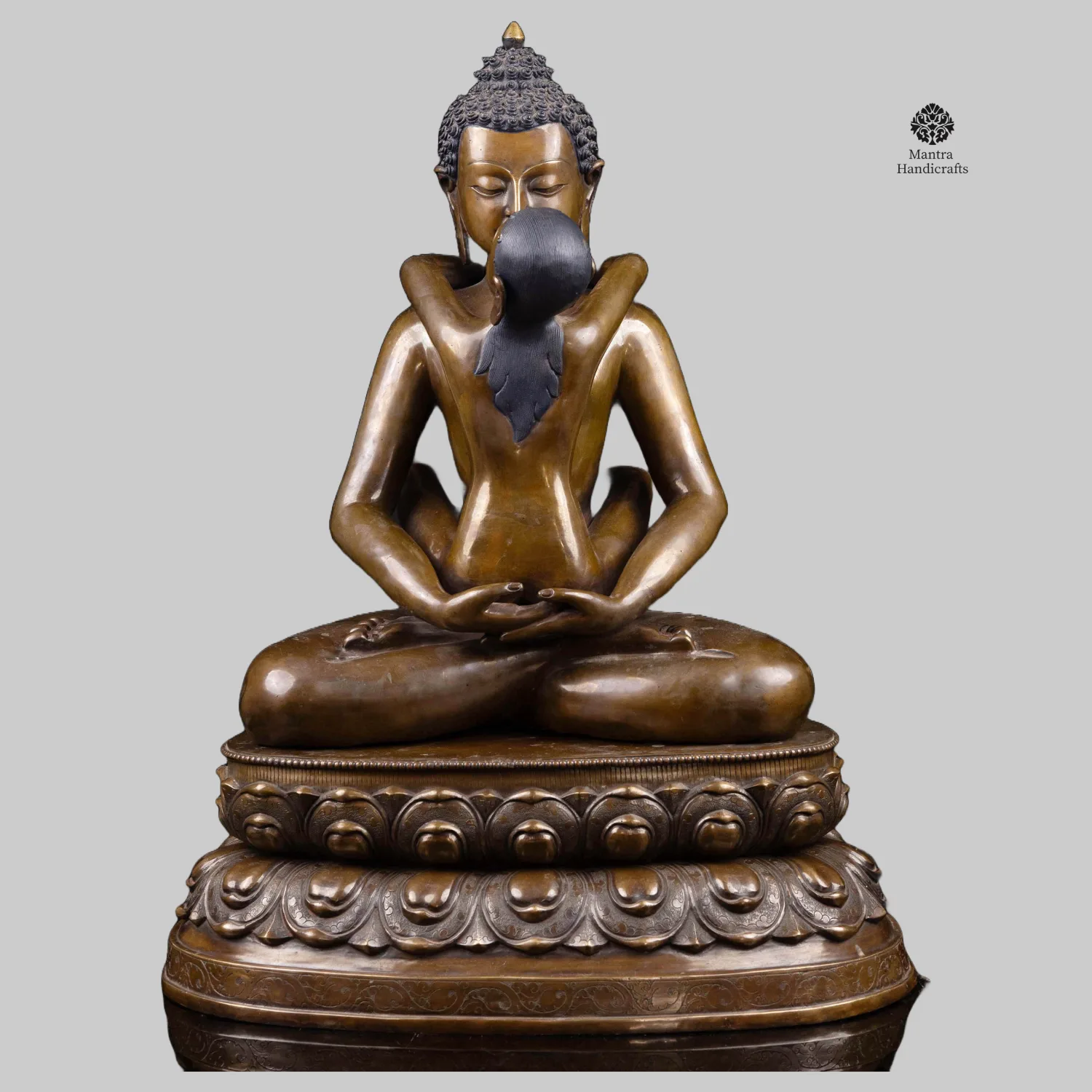 Samantabhadra Buddha Shakti Statue | Handmade Chocolate Oxidized Bodhisattva