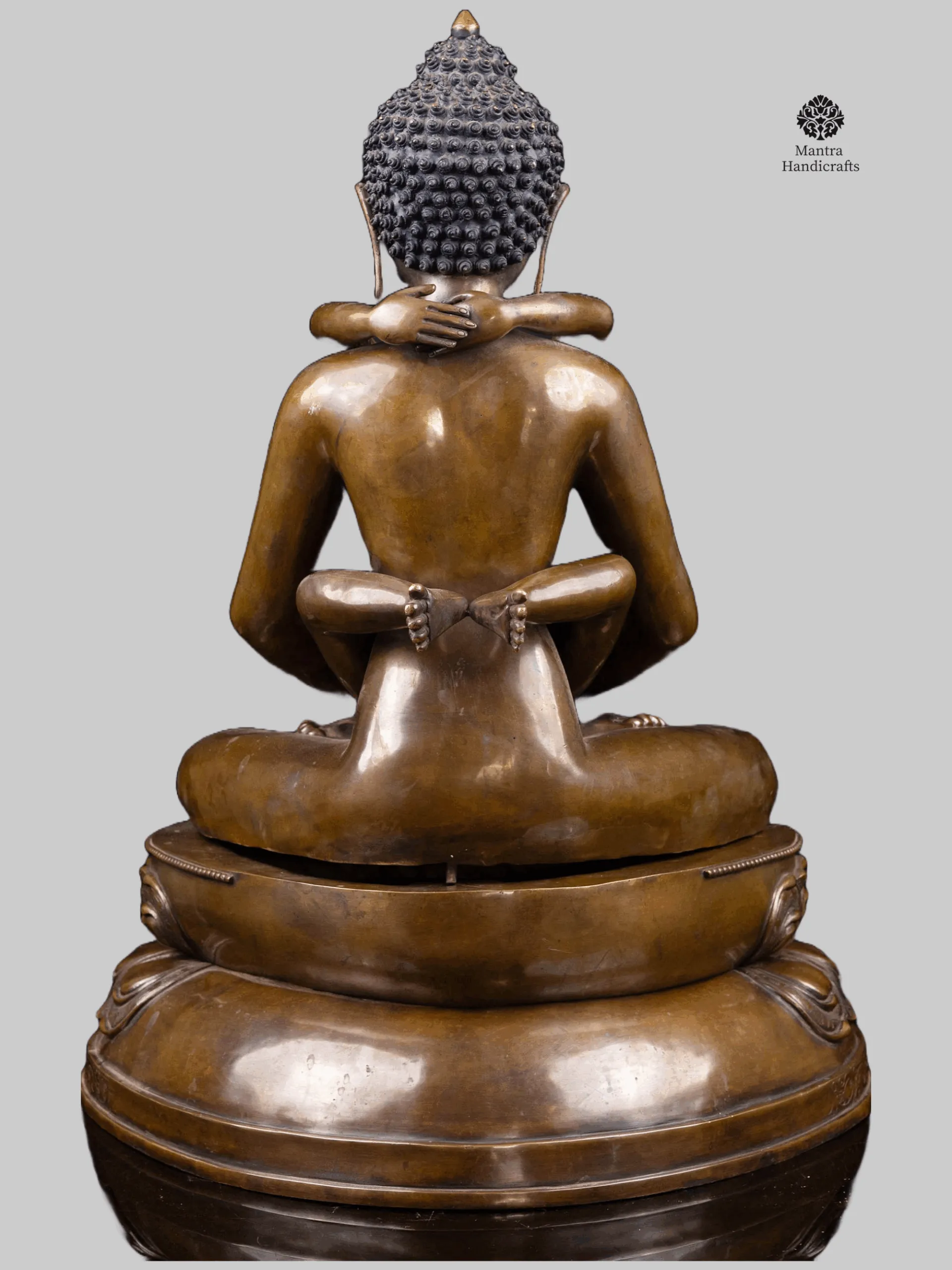 The statue’s double base design adds stability and visual balance, while also symbolizing the foundation of spiritual awakening and the unity of wisdom and compassion. Every curve and contour of this statue has been carefully sculpted by skilled artisans, reflecting a profound dedication to traditional techniques combined with artistic innovation. The chocolate oxidized surface not only gives a warm, earthy tone but also highlights the delicate engravings, conveying an aura of serene power and timeless beauty.