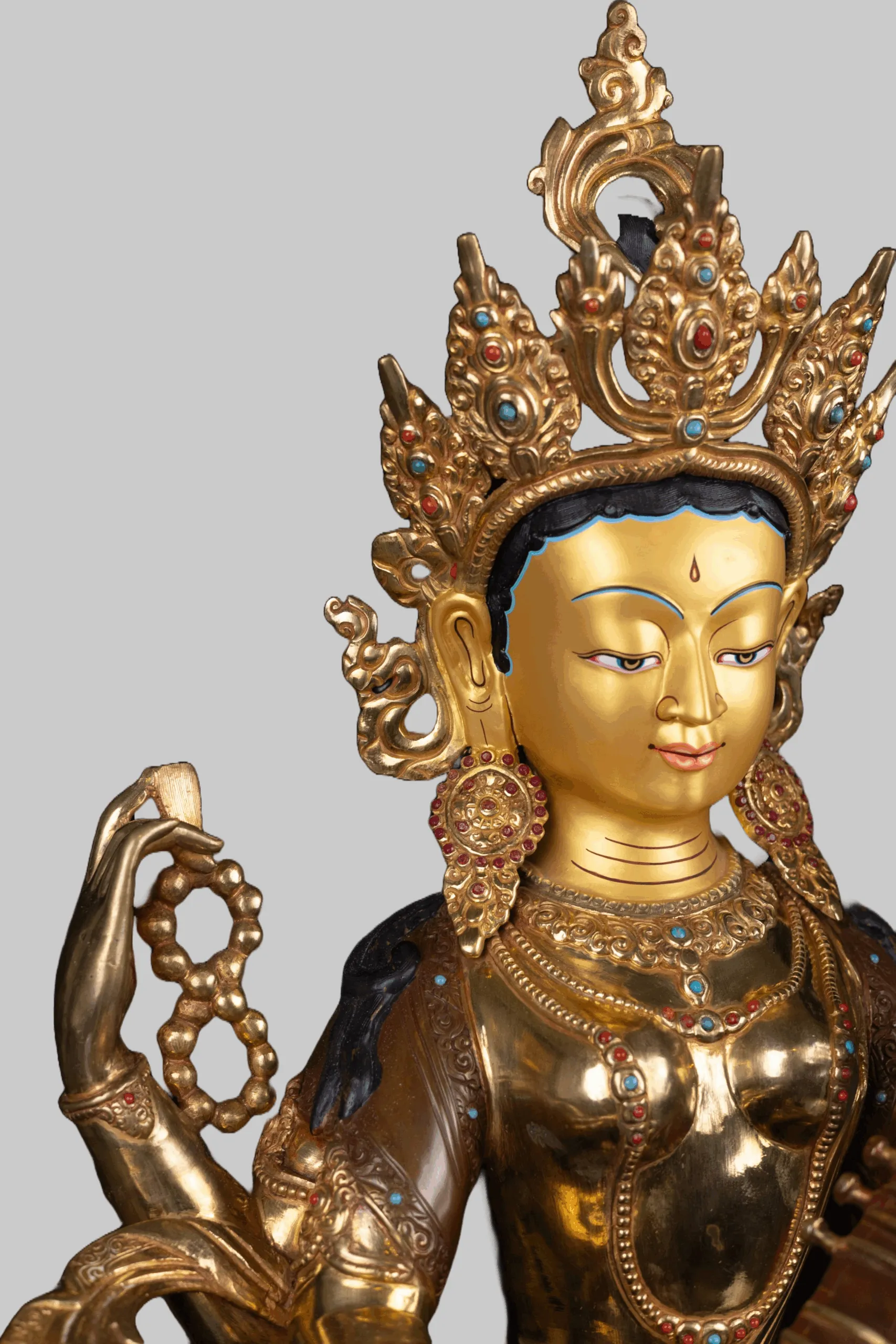 Expertly crafted by skilled artisans, this statue showcases intricate detailing, from the veena she plays to the delicate lotus base symbolizing purity and enlightenment. It embodies traditional craftsmanship while serving as a spiritual reminder of Saraswati’s blessings.