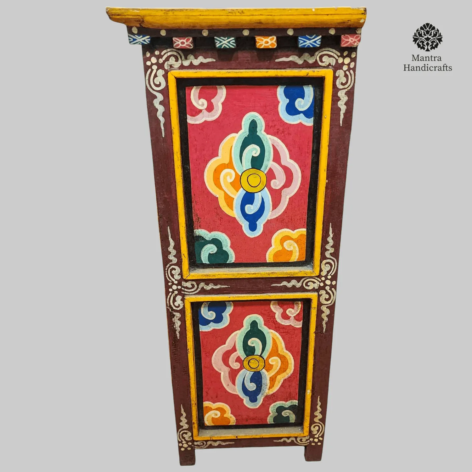 For those interested in acquiring such a cabinet, platforms like Etsy offer a variety of options. For instance, a traditional vintage Tibetan wooden cabinet with one door and three drawers, hand-painted with thangka colors and handmade in Nepal, is available for purchase.