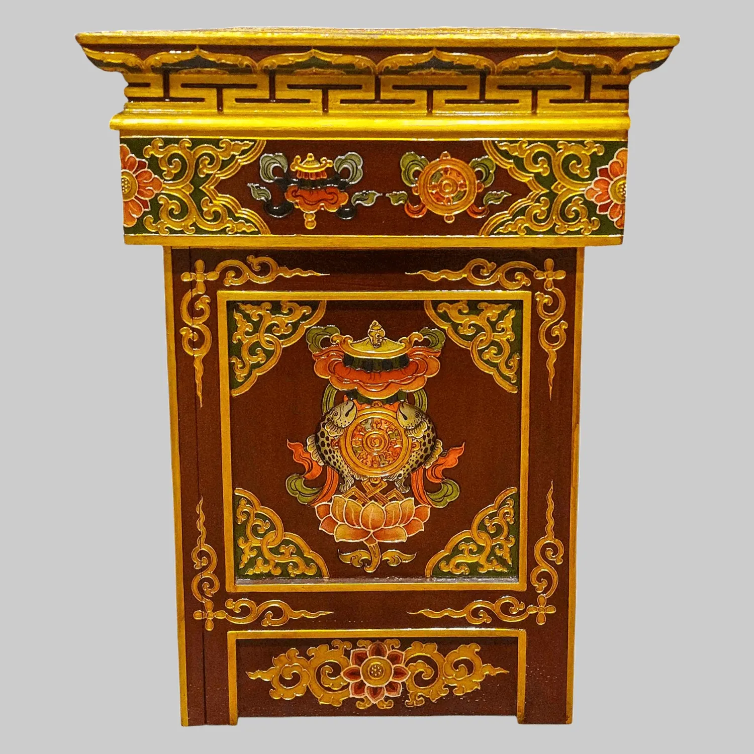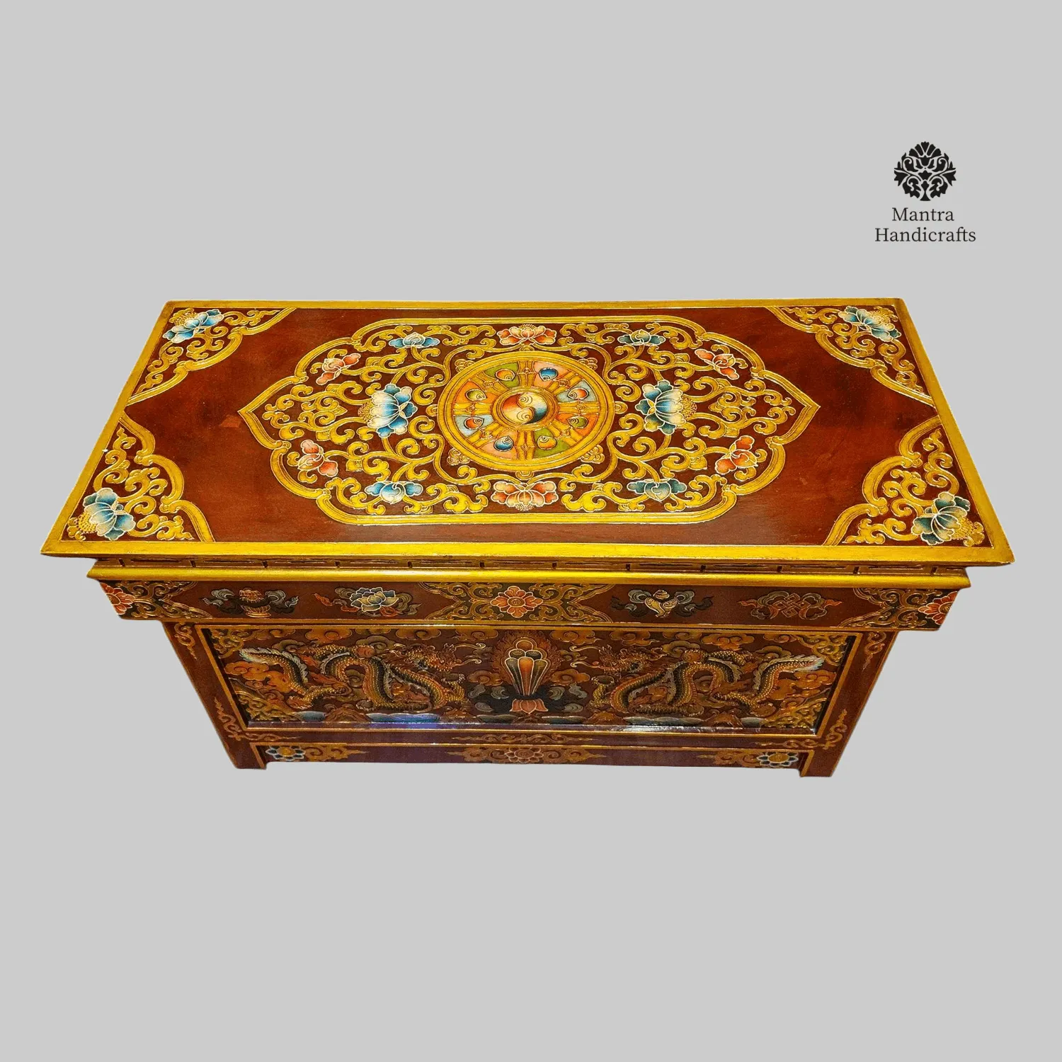 This handmade Tibetan Folding Table is a unique piece of art crafted with care and precision by skilled artisans. Due to its handcrafted nature, slight variations in color, texture, and size may occur, making each statue one-of-a-kind. Please note that these minor differences enhance the individuality and charm of the piece, ensuring you receive a truly distinctive work of art.
