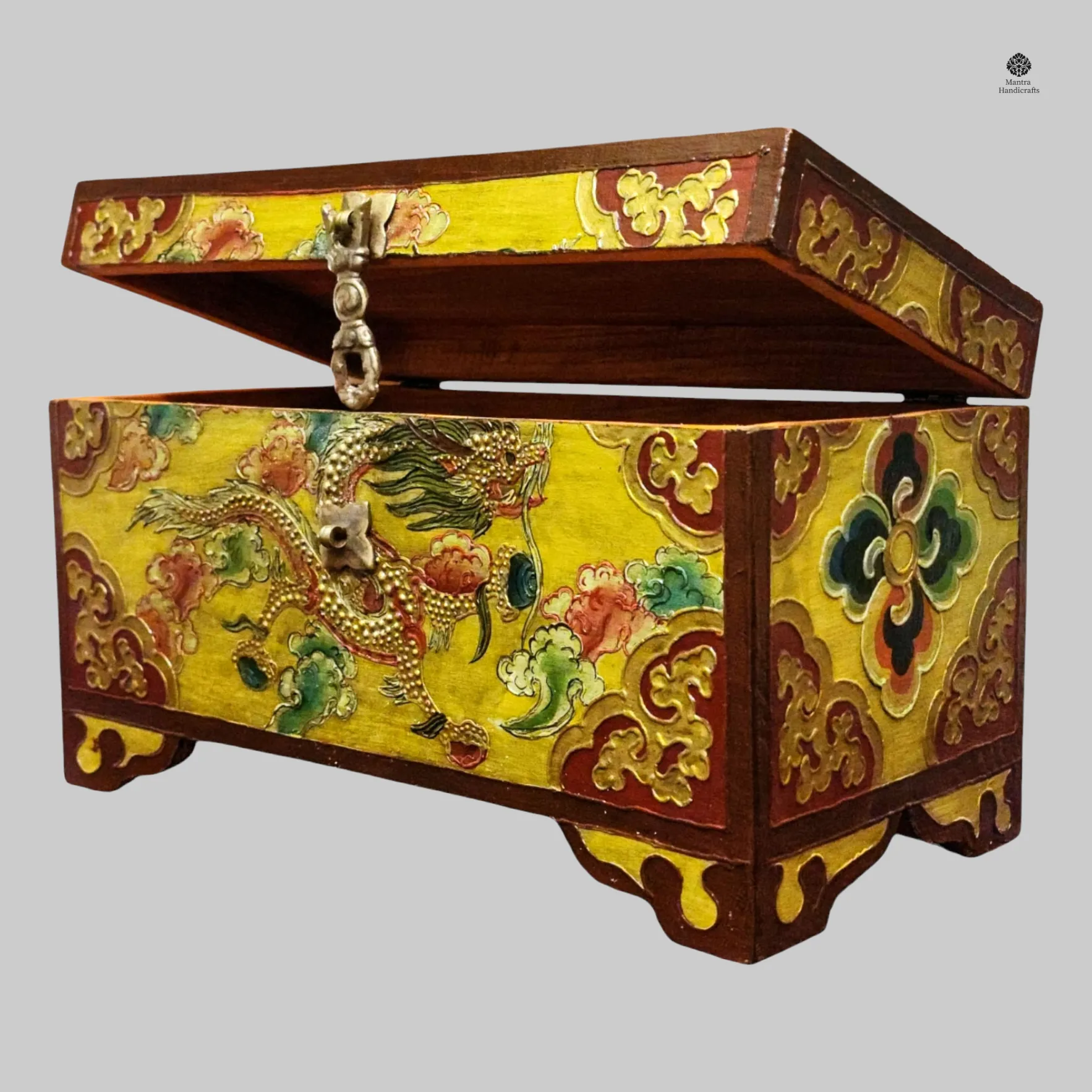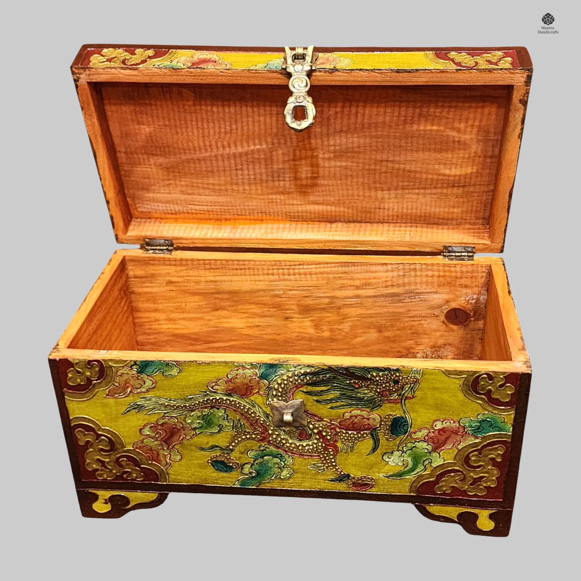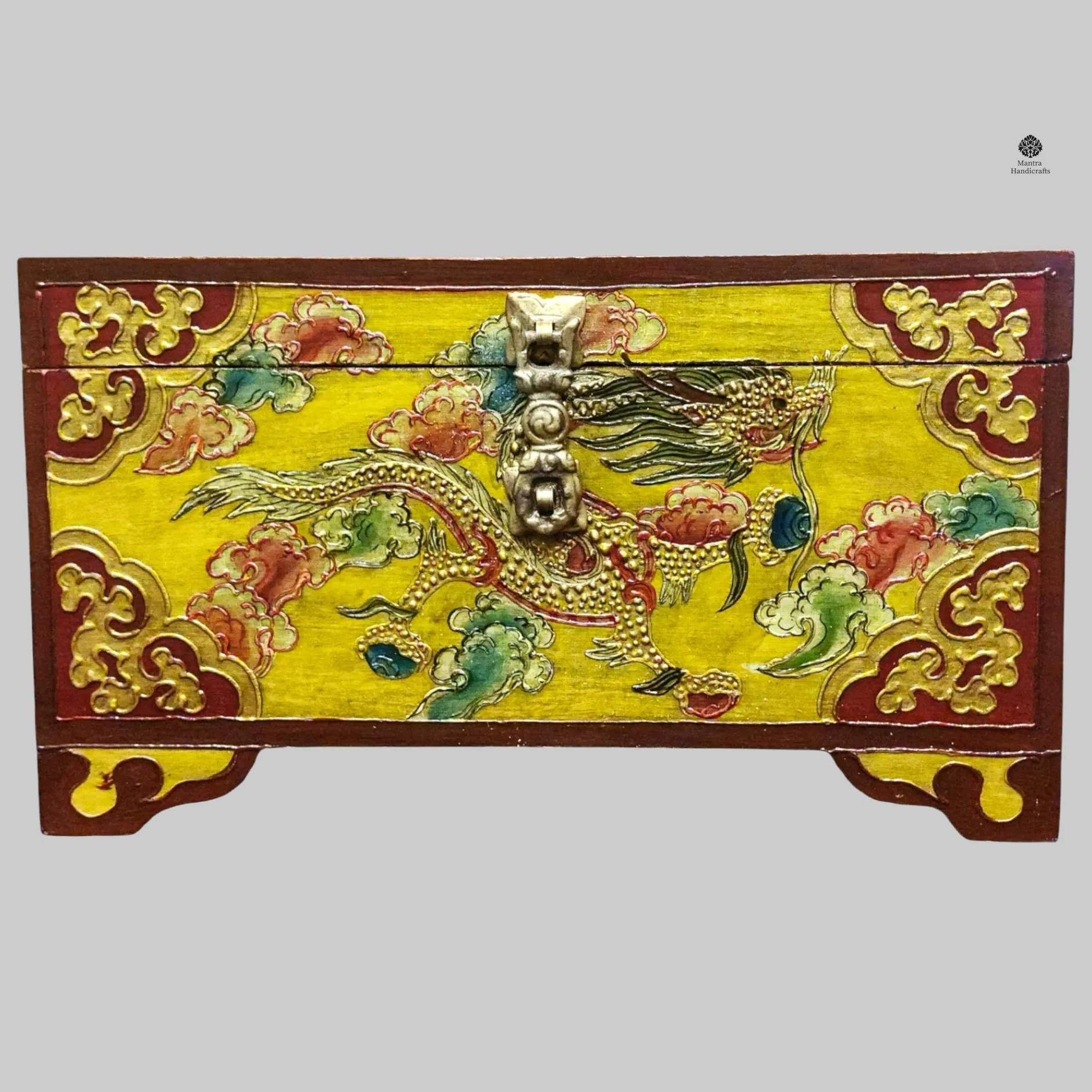 Tibetan Style Wooden Box | Dragon Design with Classic Colors