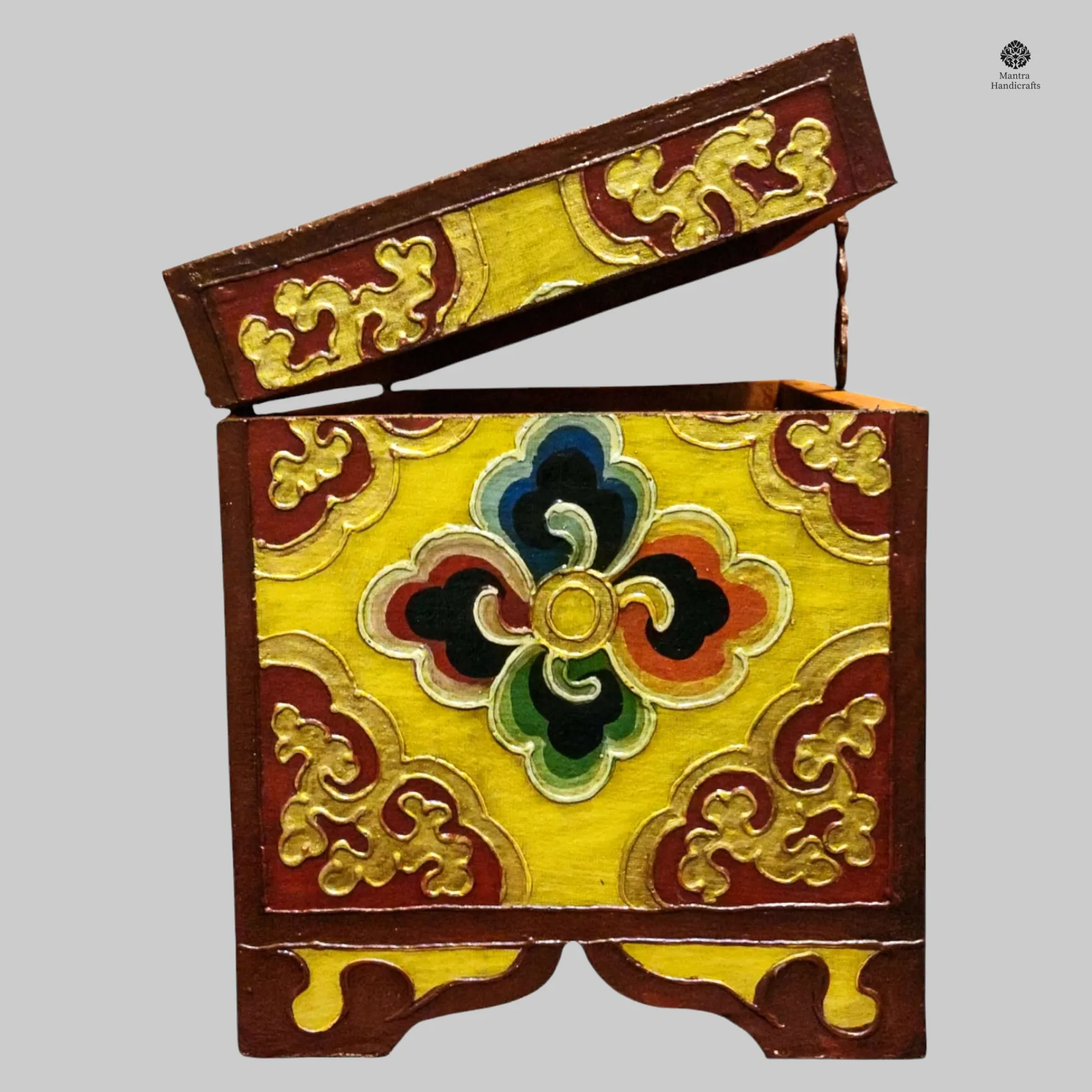 Perfectly suited for storing ritual items, prayer beads, jewelry, incense, or personal keepsakes, this hand-painted wooden box adds a sacred and majestic presence to your altar, meditation space, or home décor.