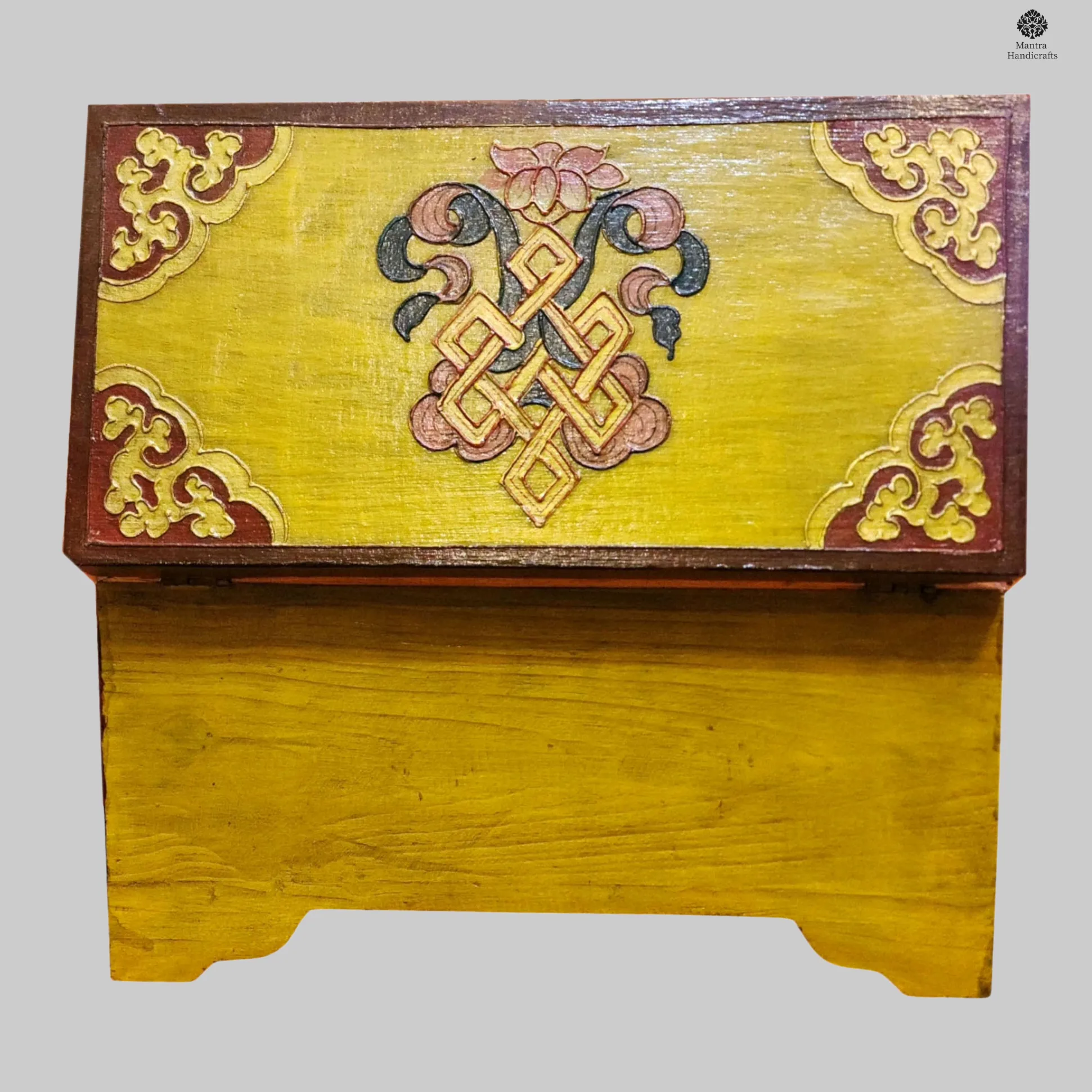 This Buddhist Wooden Box with Dragon Design beautifully captures the essence of Tibetan artistry and symbolism. Handcrafted in Nepal by skilled artisans, the box features an intricately painted dragon motif, brought to life with vibrant traditional Tibetan colors that reflect power, wisdom, and protection.