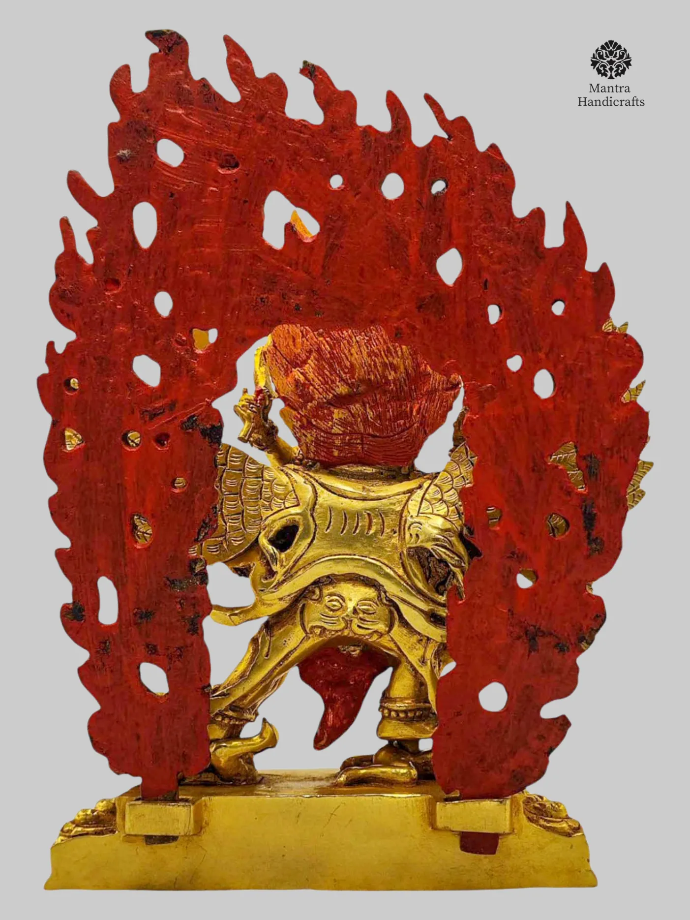 Intricate in form yet compact in size, this piece is ideal for personal shrines, altar spaces, or advanced tantric practitioners who revere Vajrakilaya as a protector deity. The statue follows traditional Himalayan iconography, with details such as wrathful mudras, flaming backplate, skull garlands, and lotus pedestal all crafted by master artisans with generations of Buddhist statue-making heritage.