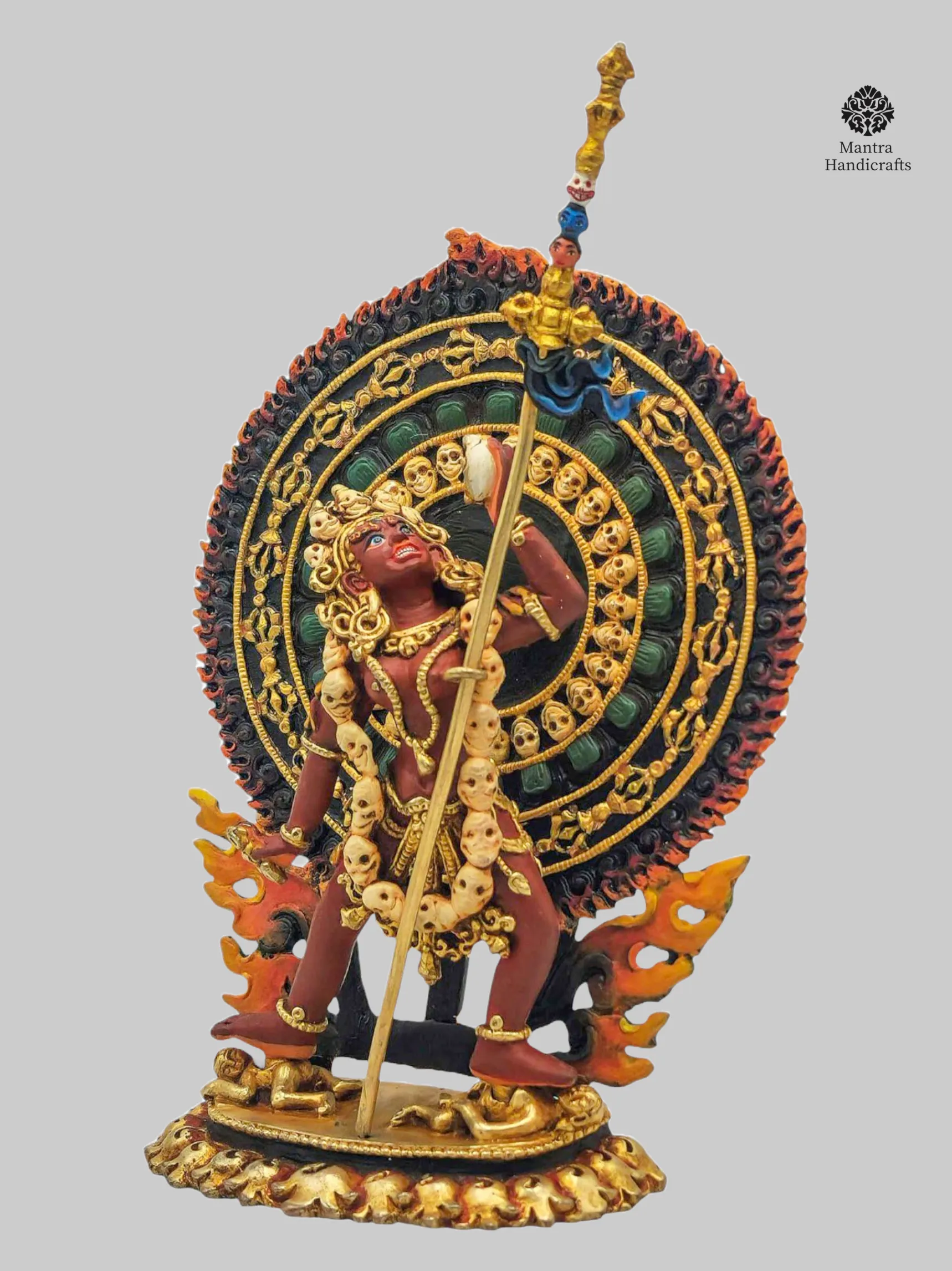 In essence, this exquisitely detailed, hand-painted Vajrayogini statue merges artistry with sacred tradition, making it a meaningful addition for both serious practitioners of Tibetan Buddhism and collectors of authentic Himalayan spiritual art.