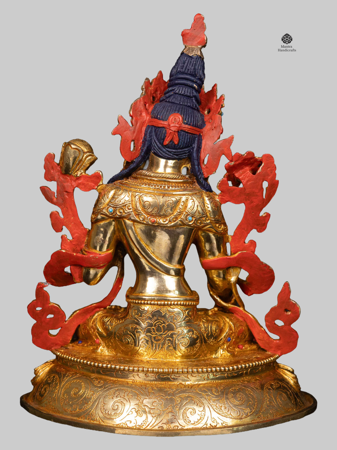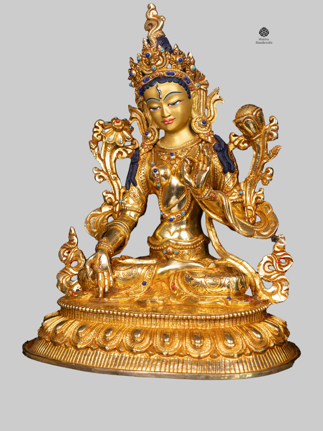 Expertly handcrafted by skilled artisans in Nepal, this sacred statue is made from high-quality copper alloy and gilded in pure 24K gold, with intricate stone inlays and a delicately hand-painted face that radiates peace and divine grace. Each detail, from her seven all-seeing eyes to her gentle posture, reflects exceptional craftsmanship and deep spiritual meaning.