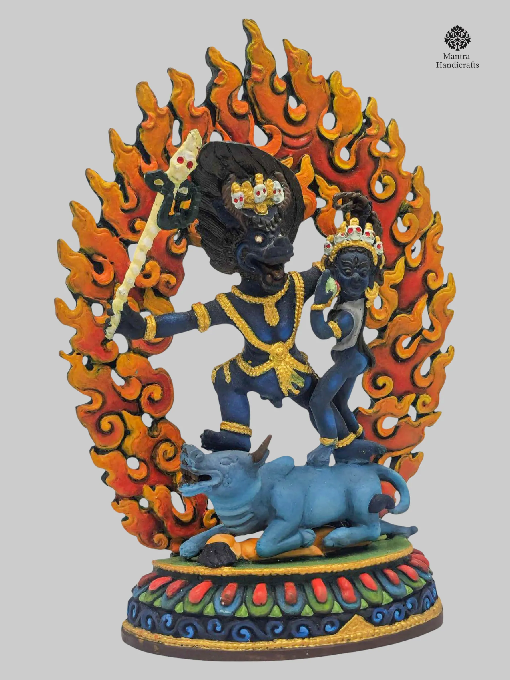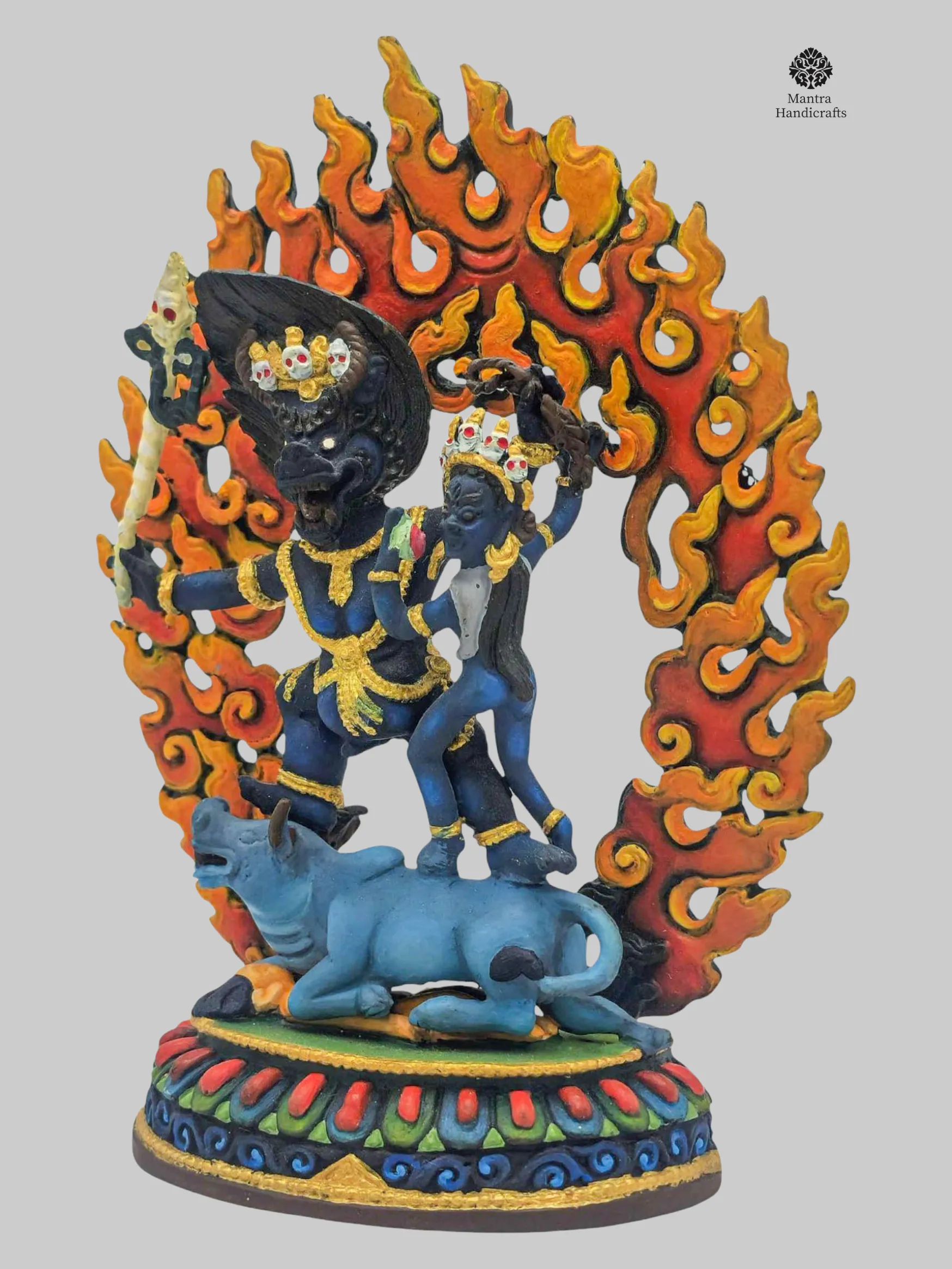 Yamantaka Miniature Statue | Thangka Color Finish | Wrathful Destroyer of Ignorance