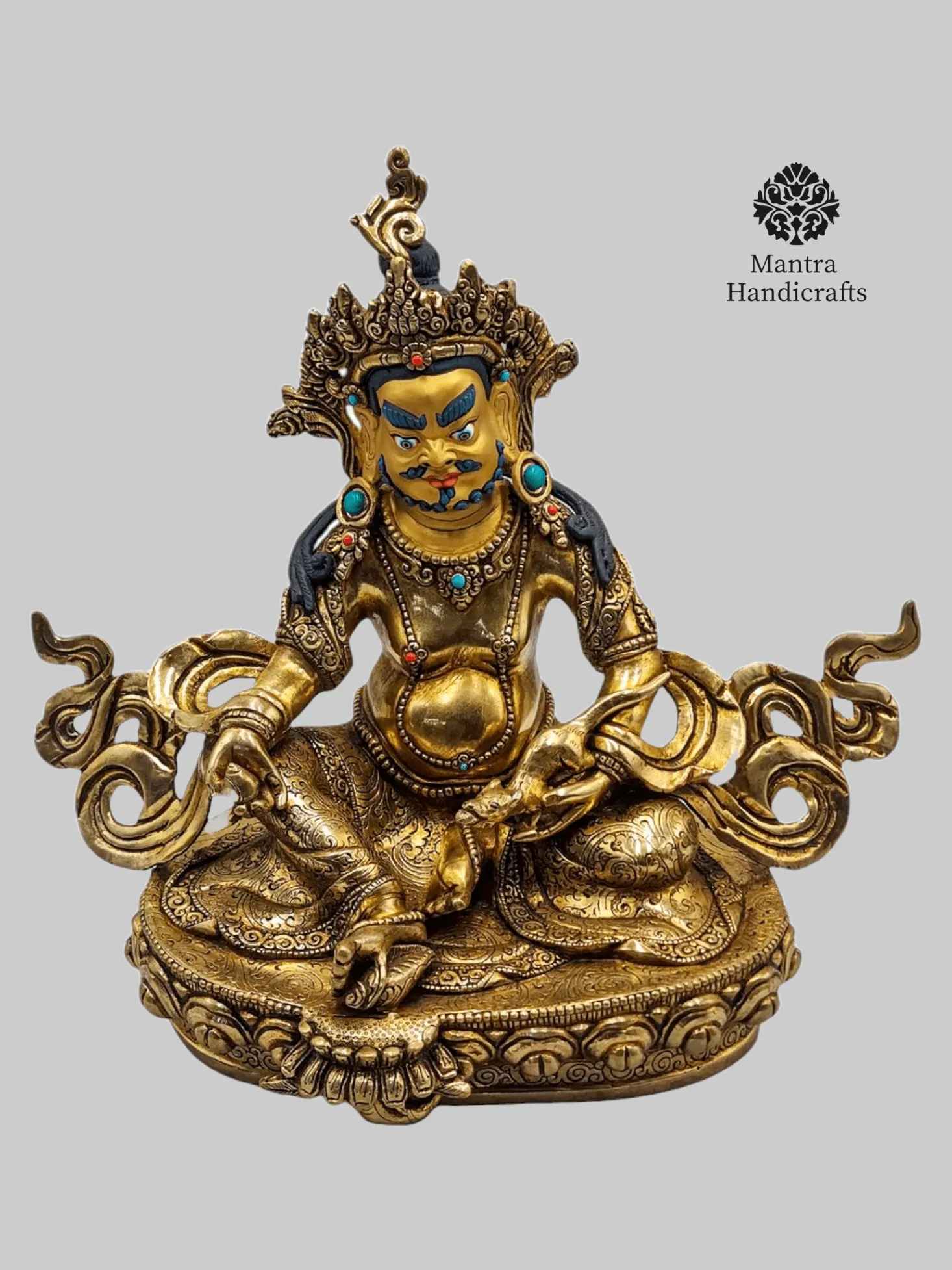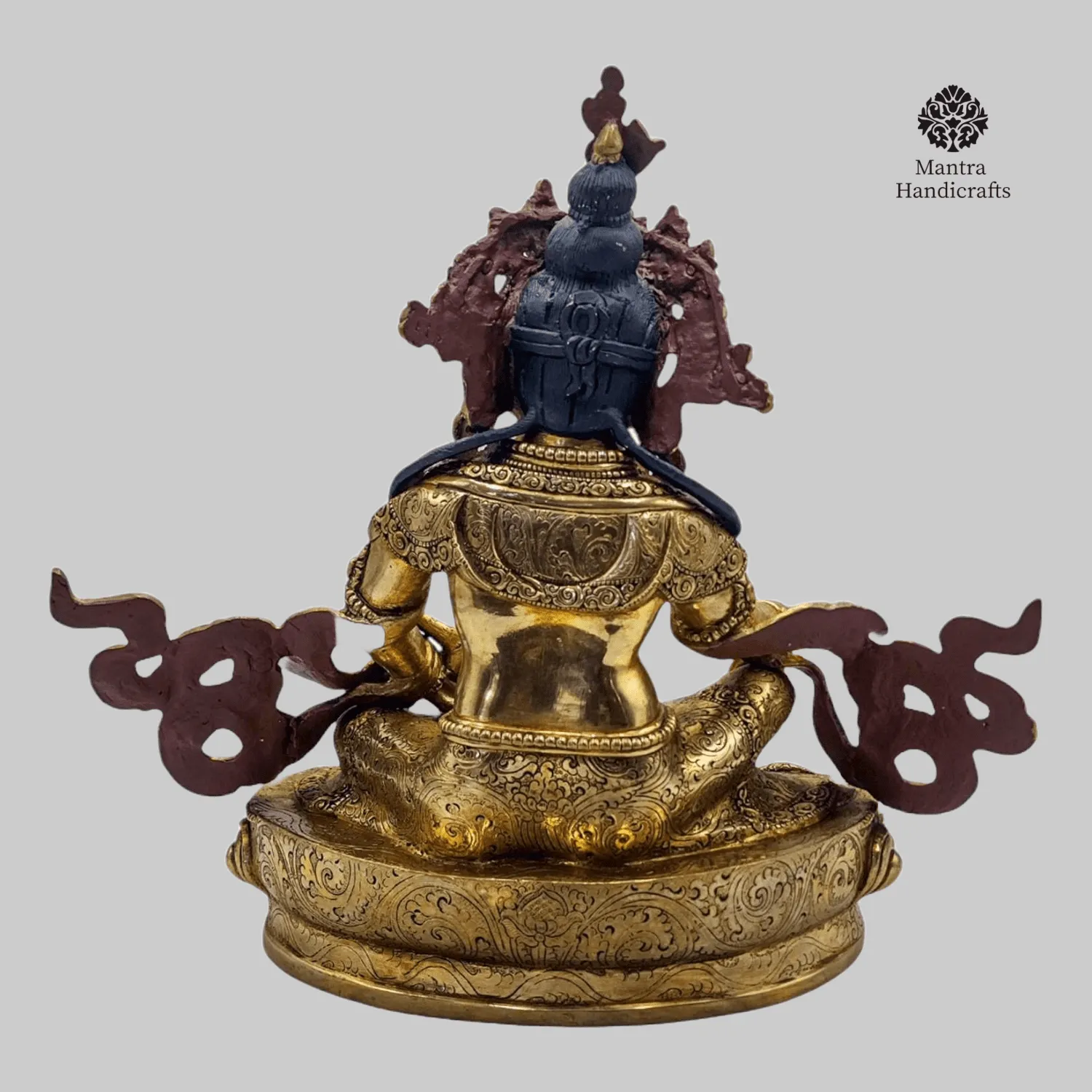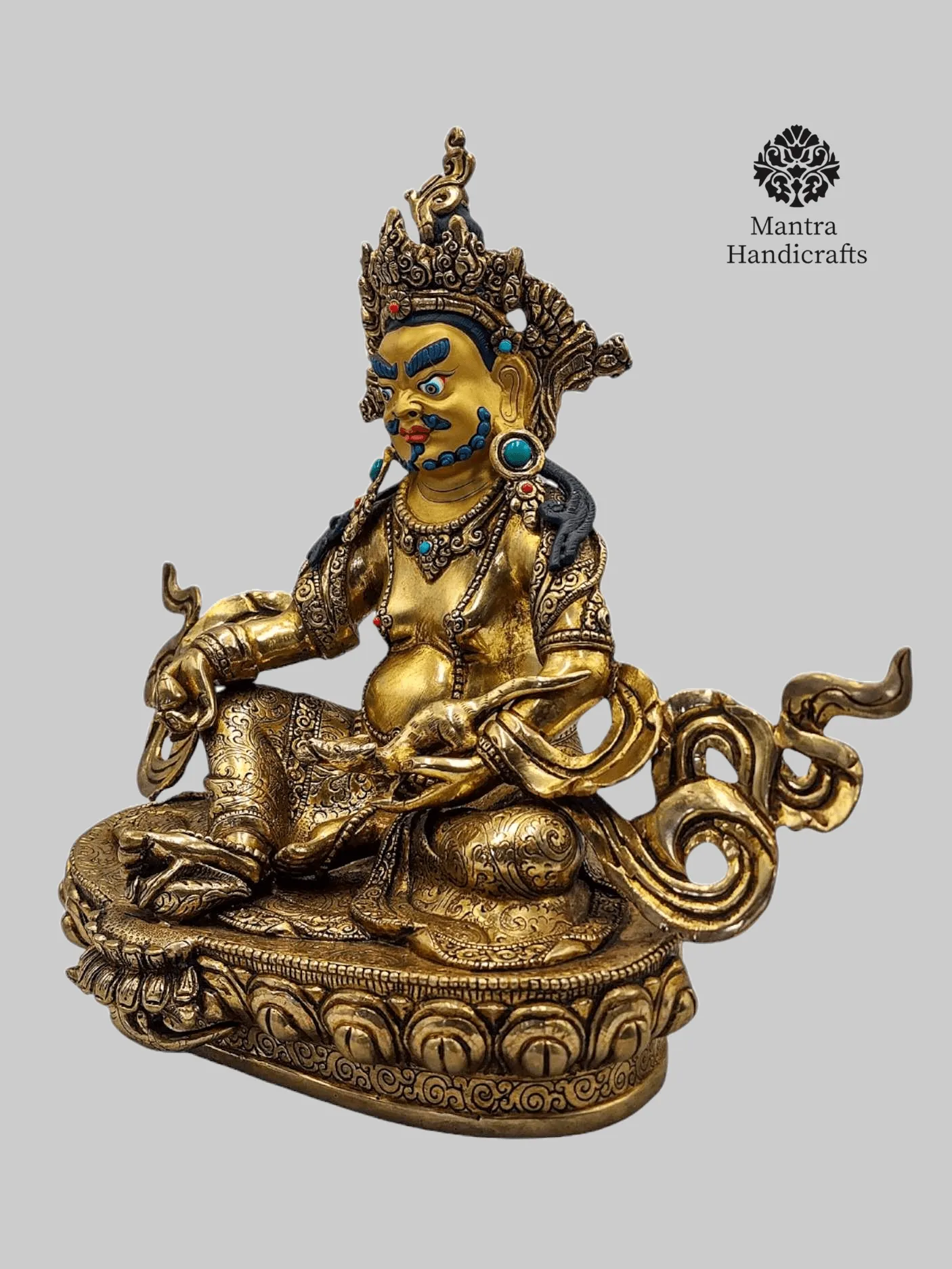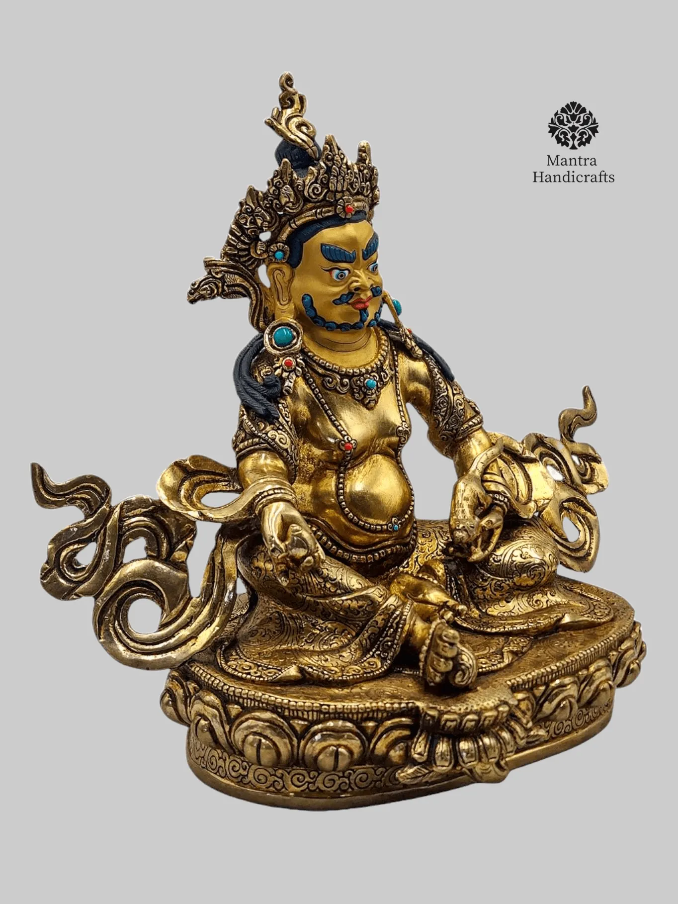 This statue is handcrafted by skilled artisans in Nepal, using traditional Himalayan metal-casting techniques passed down through generations. Every detail from Jambhala’s compassionate expression to the mongoose that symbolizes the spontaneous flow of riches is carefully sculpted to preserve authentic Tibetan Buddhist iconography.
