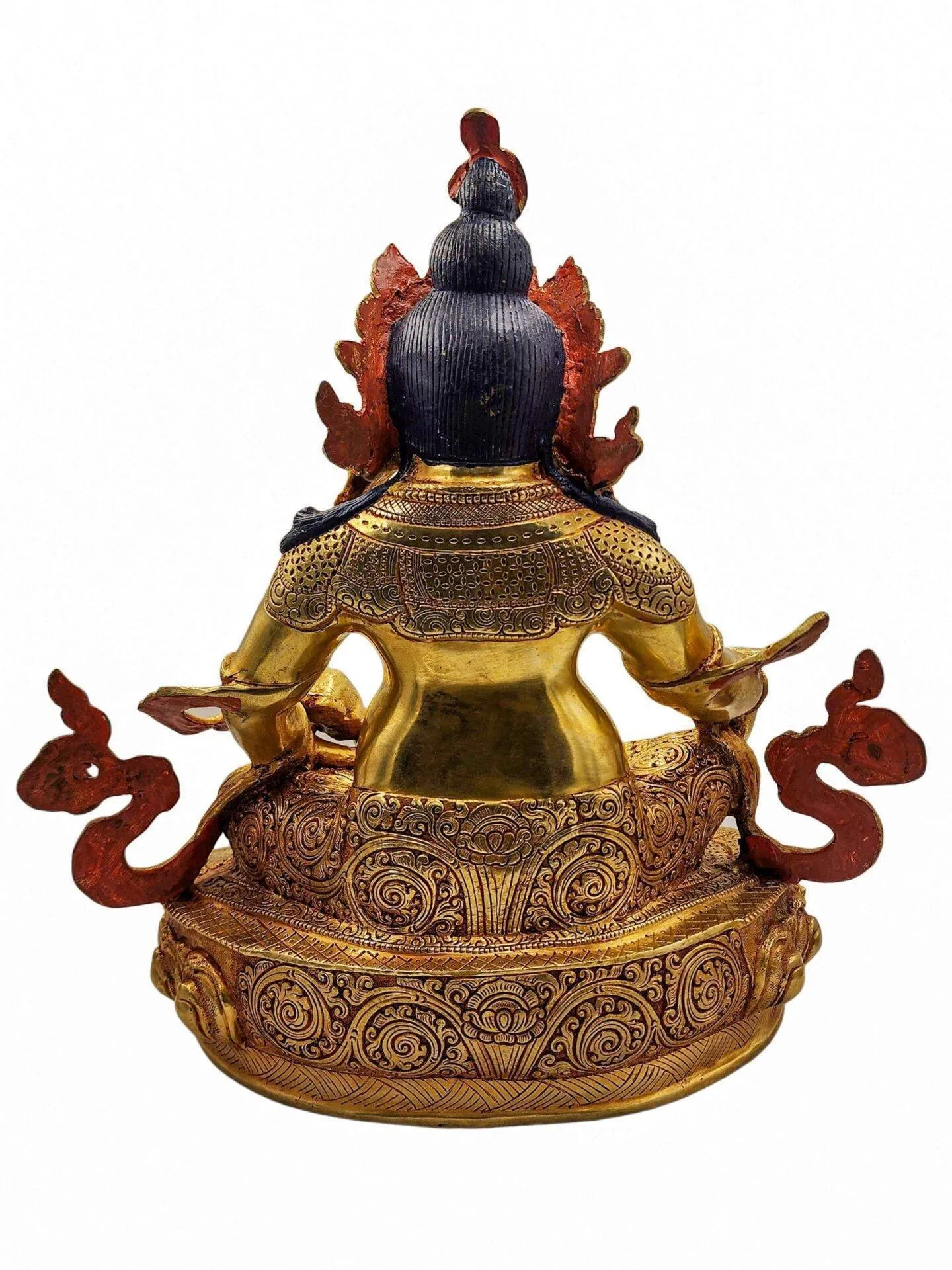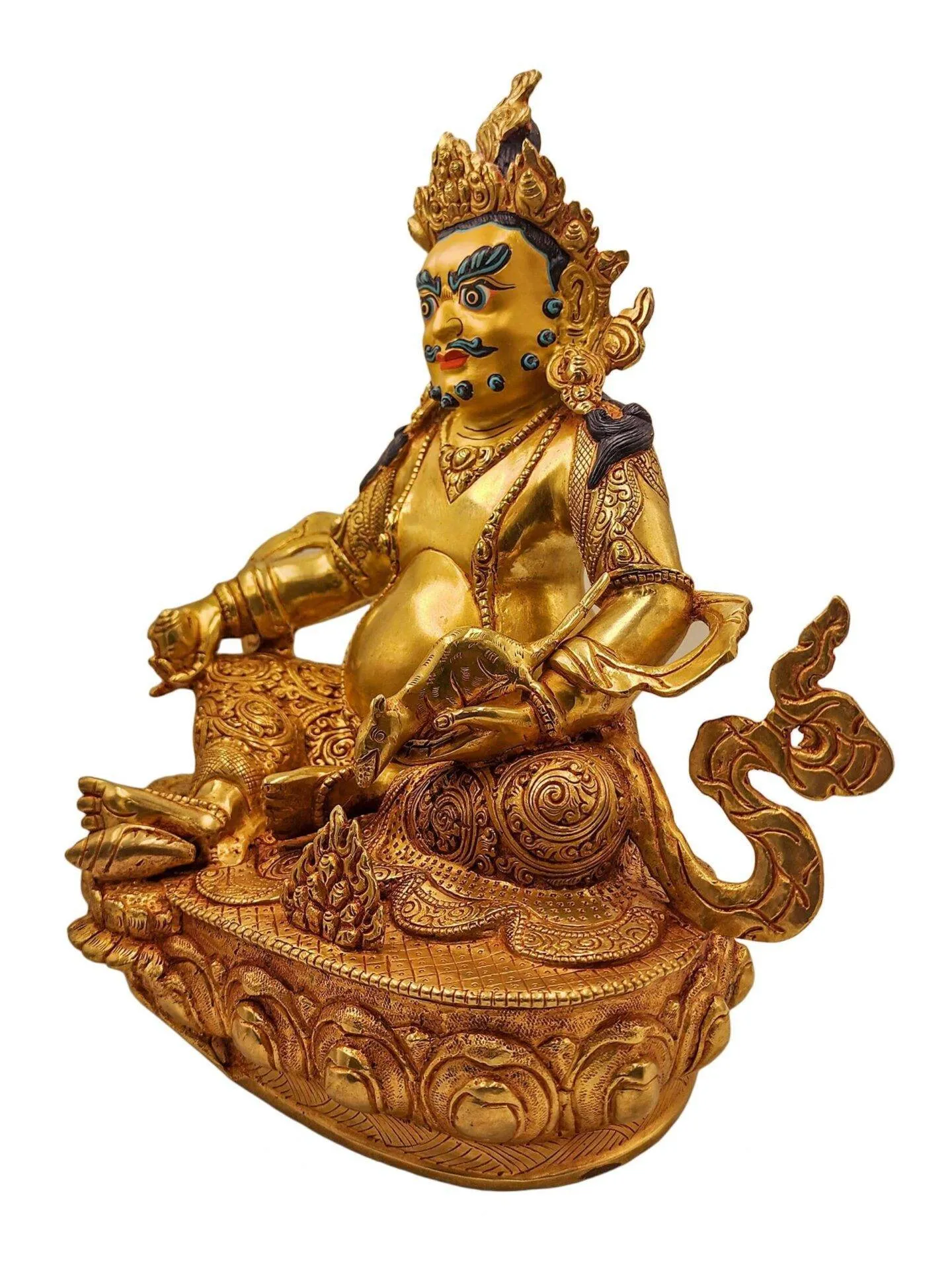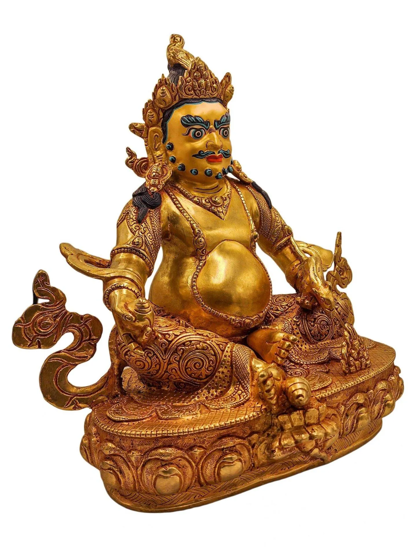 Handcrafted Yellow Jambhala Wealth Deity Statue | Tibetan Yellow Jambhala Buddha Sculpture for Prosperity | 24K Gold Gilded With Copper Body